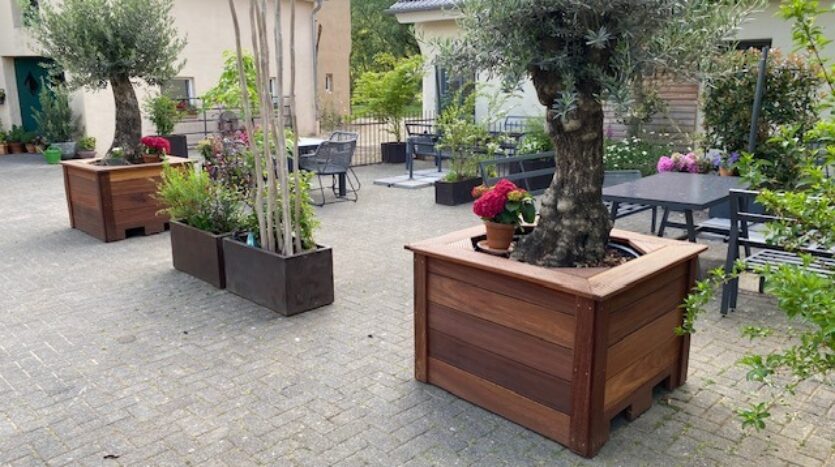 De vakantieappartementen beschikken over een aparte tuin met kas en verhoogde bedden.