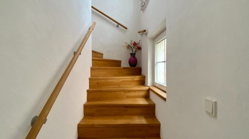 Über einen separaten Eingang mit Treppe erreicht man den Garten und die Hofanlage.