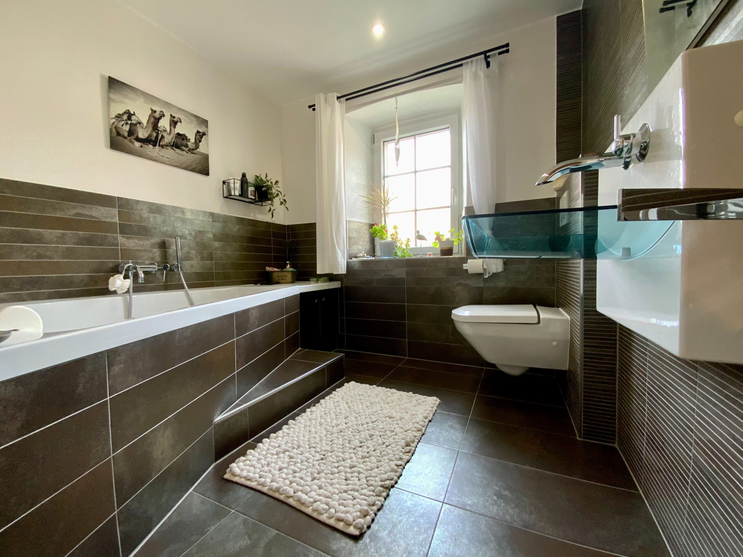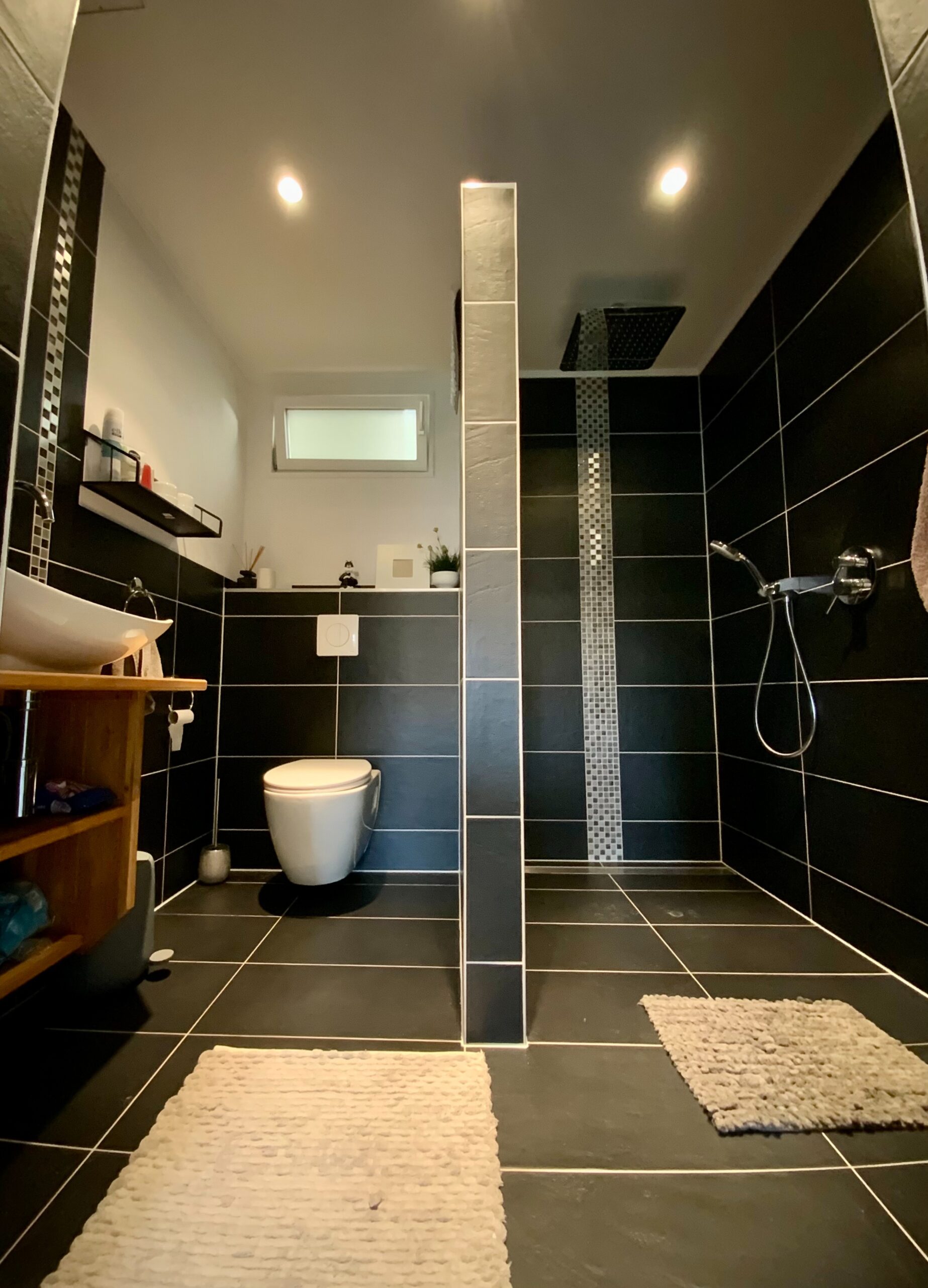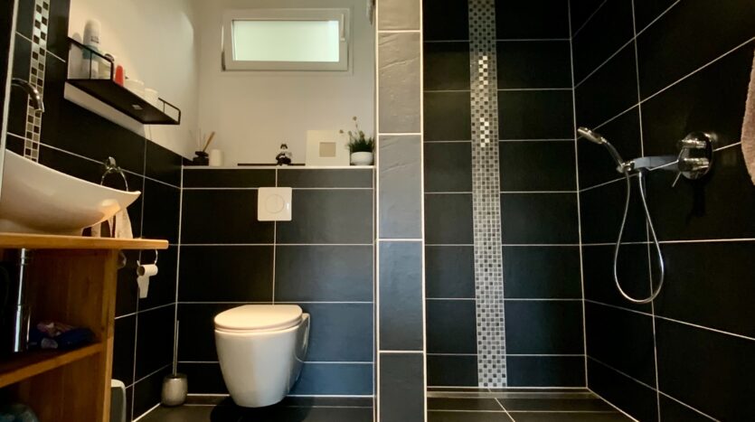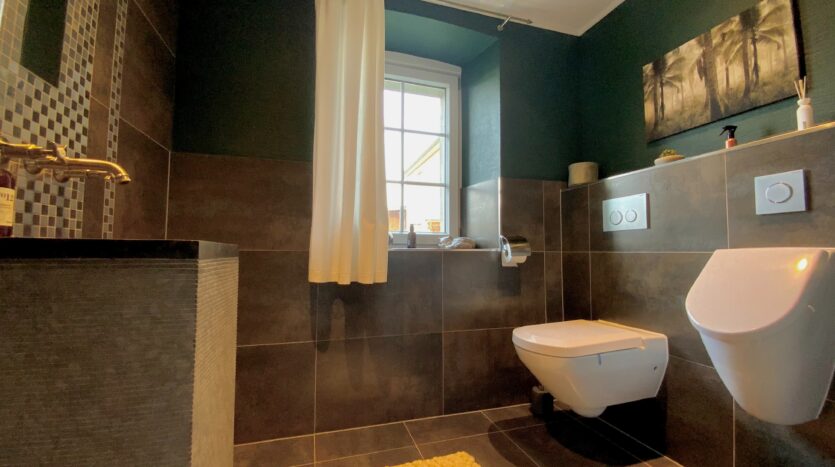 Im Erdgeschoss befindet sich eine behindertengerechte Toilette. Die weiteren Toiletten befinden sich im OG.