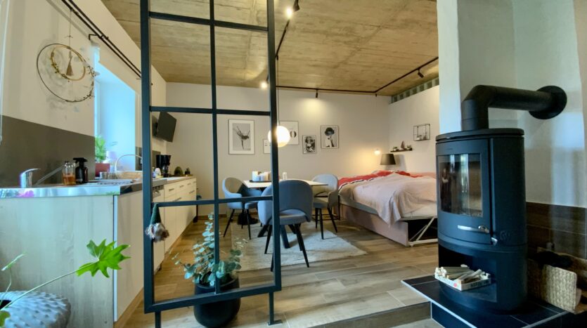 Das Loft wird beheizt mit einem zentral gelegenen hochwertigen Holzofen und einer Zentralheizung.