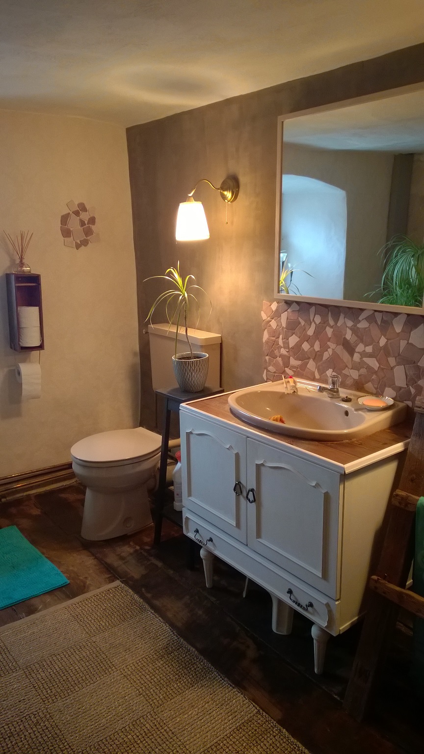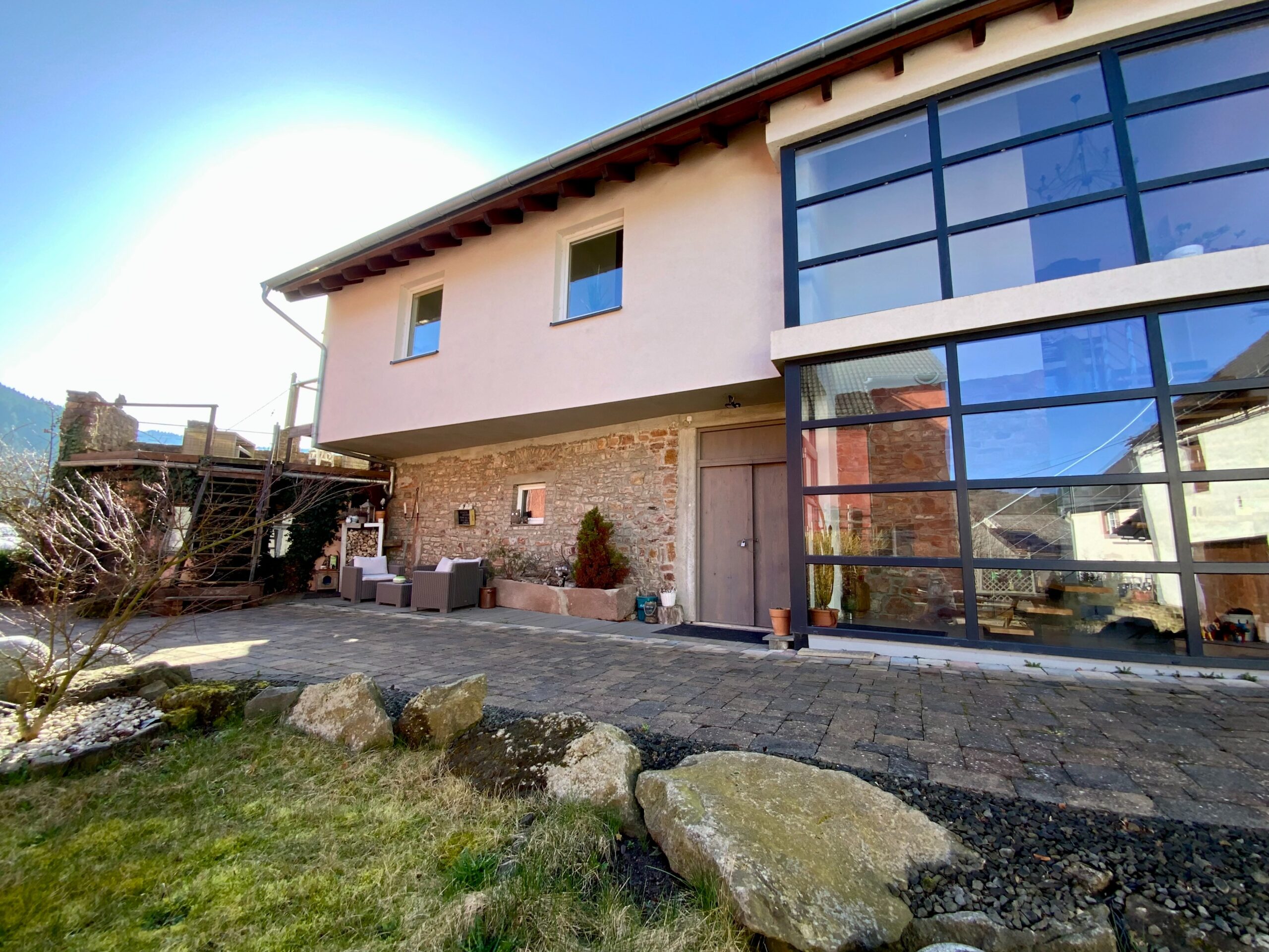 Das geräumige und von innen komplett neu aufgebaute ehemalige Nebengebäude (Mauer mit Isolierten Poroton Stein) mit seinen 2 Ferienwohnungen von jeweils ca. 80 m² und 120 m² wurde in solider Bauweise mit errichtet und spiegelt den Charme seiner Zeit wider. Ein Teil des Mauerwerks besteht aus Bruchstein der sichtbar belassen wurde.