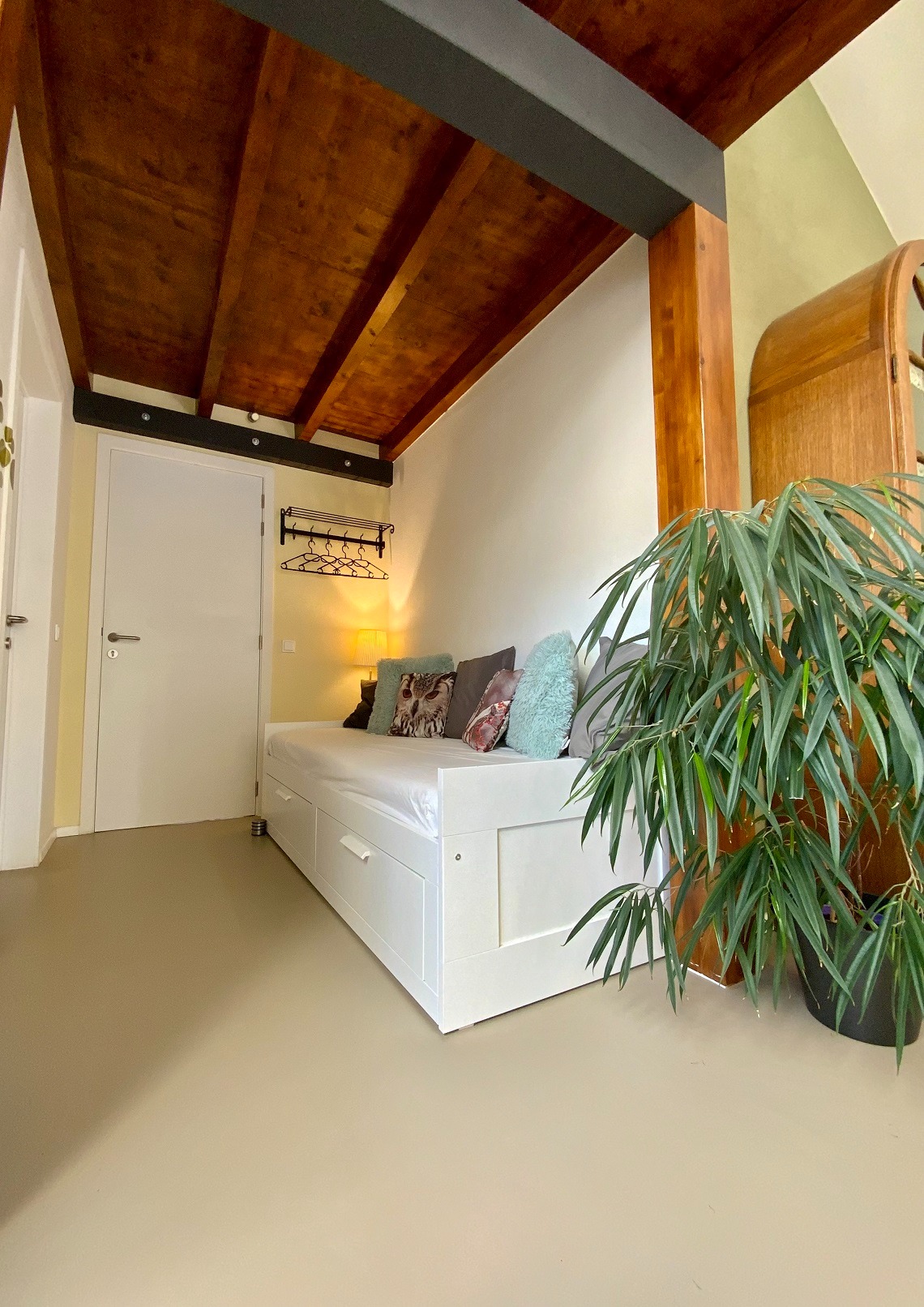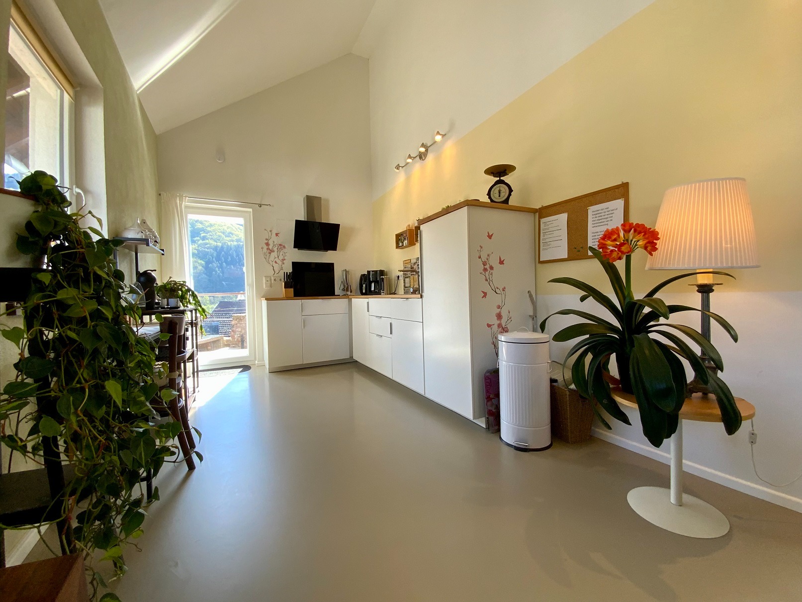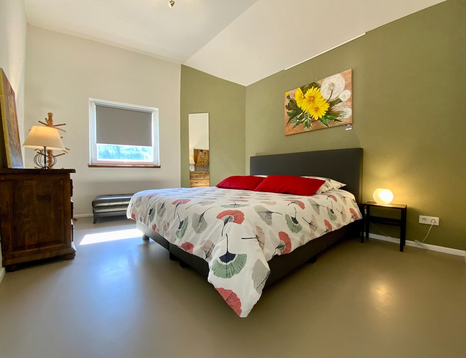 De vloeren zijn van nieuwe betonnen plafonds en de kamers zijn zeer open tot aan het dak, wat een romantische sfeer in het huis creëert. De vloeren op de begane grond en de eerste verdieping zijn uitgevoerd in naadloze designvloeren.