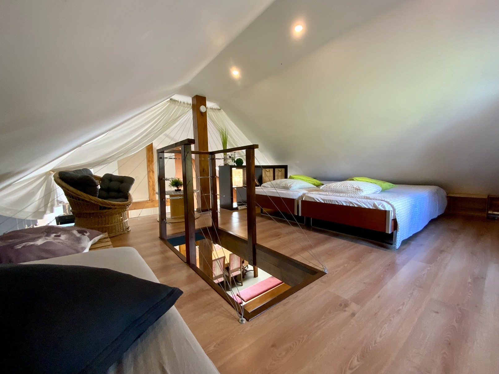Die Geschossdecken bestehen aus neuen Betondecken und die Räume sind bis unter das Dach sehr offen gestaltet und bringen eine traumhafte Atmosphäre ins Haus.