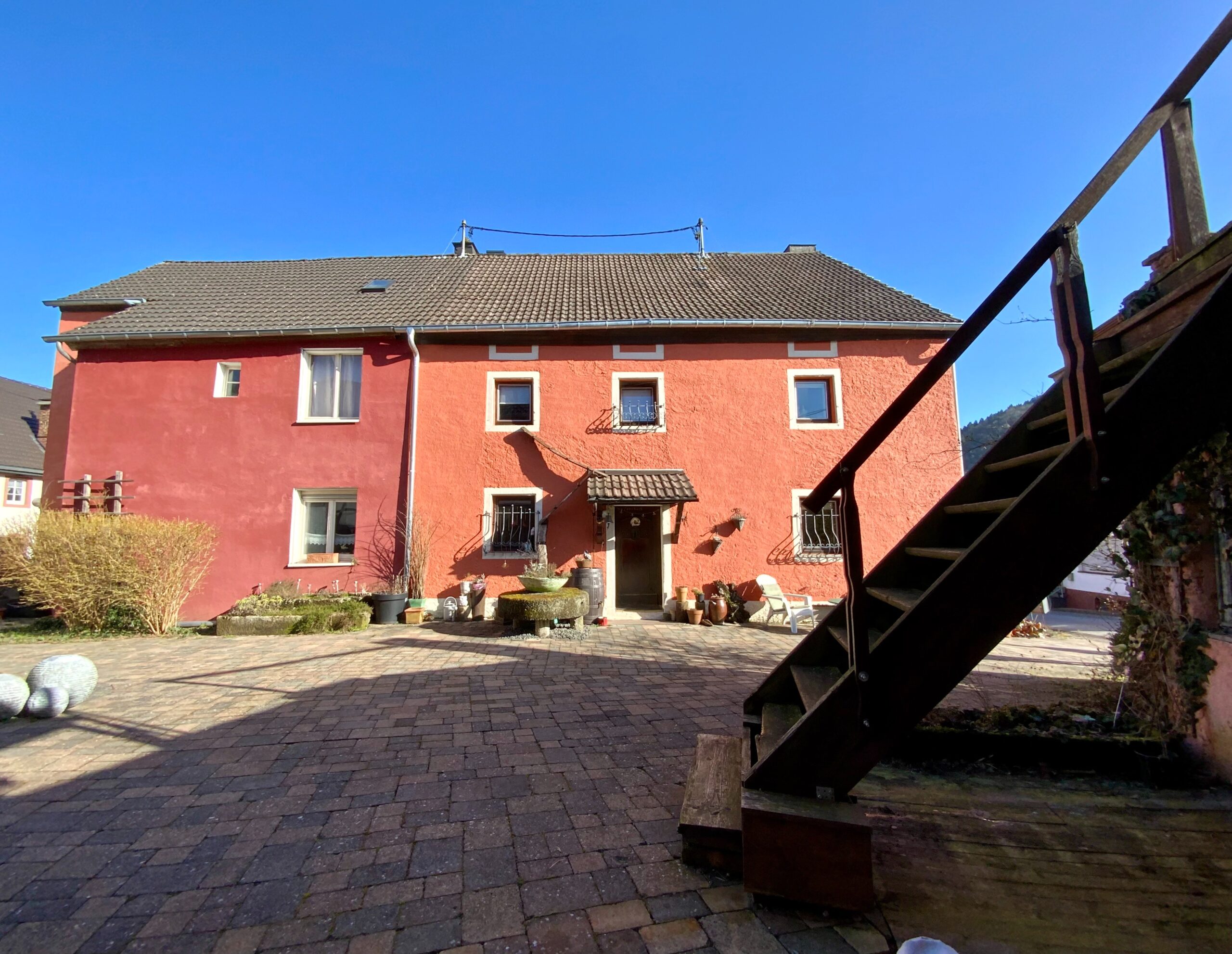 Een pareltje: een grote voormalige boerderij met binnenplaats daterend uit de 17e eeuw, waarvan de schuur geheel gerenoveerd is en omgebouwd tot twee luxe vakantiewoningen. Vrijstaande woning plus diverse bijgebouwen en een bouwperceel, rustig gelegen nabij Gerolstein.