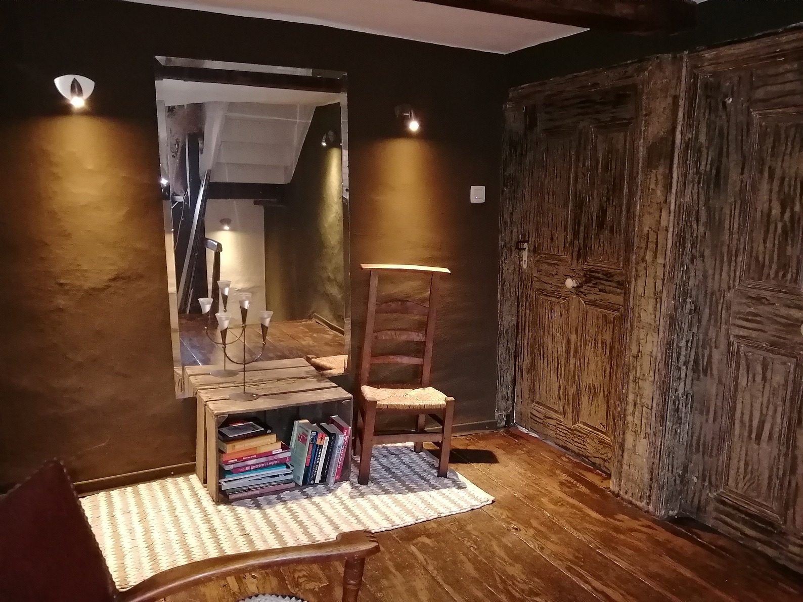 Böden bestehen zum größten Teil aus Holzdielen. Weiterhin befinden sich dort antike Innentüren, ein antiker Wandschrank und eine Wanduhr.