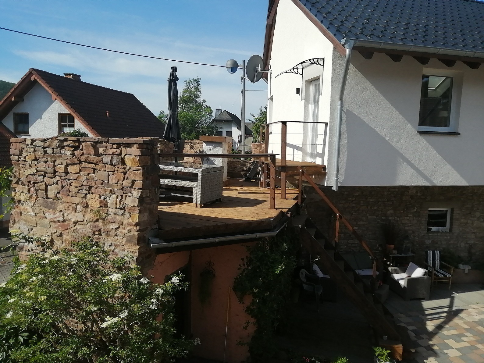 Die Dächer bestehen alle aus Pfannendächer eingedeckt und beim Sanierten teil (2019) und unsanierte Haus 2010. Restliche Dächer sind Pfannendächer wovon das Baujahr unbekannt ist.