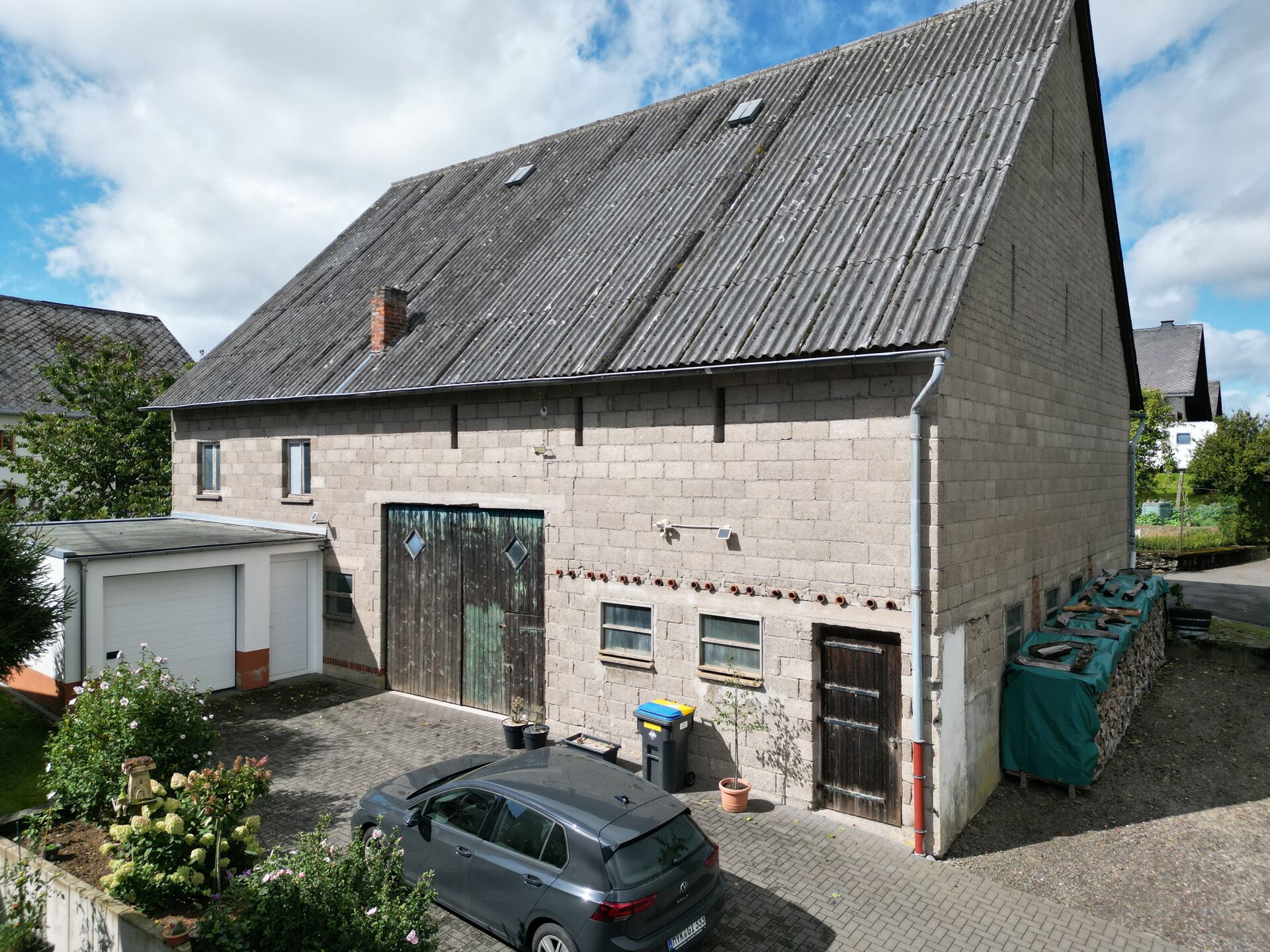 Der Außenbereich des Hauses bietet ein ehemaliges Stallgebäude, das mit einer Welleterniteindeckung versehen ist. Dieses könnte vielseitig genutzt oder auch nach Belieben umgebaut werden. Direkt angrenzend befindet sich eine Garage, die ausreichend Platz für Ihr Fahrzeug bietet. Der Außenbereich wurde mit einer neuen befestigten Hoffläche versehen, die zusätzlichen Komfort und Platz für Außenaktivitäten oder Parkmöglichkeiten bietet.