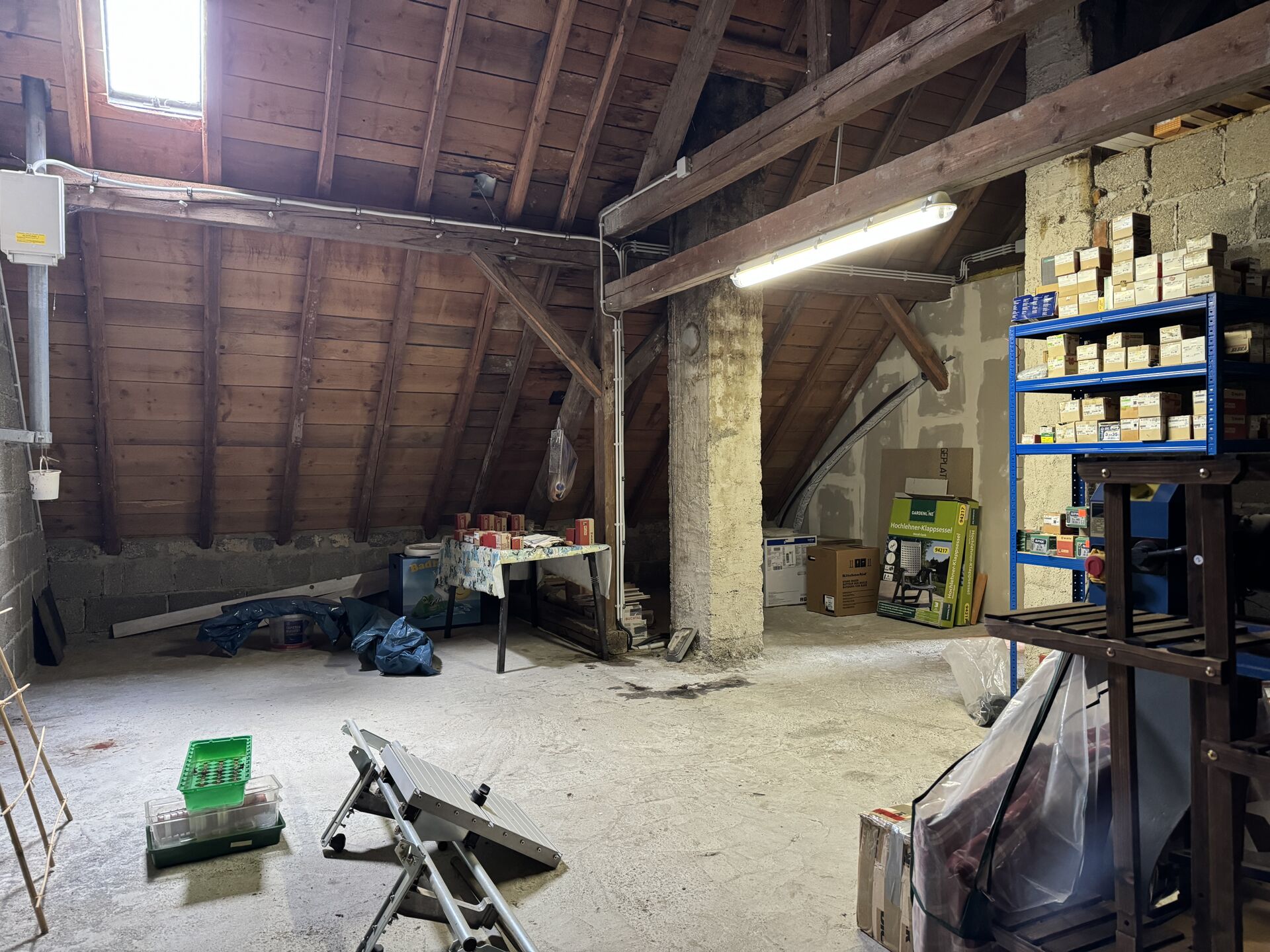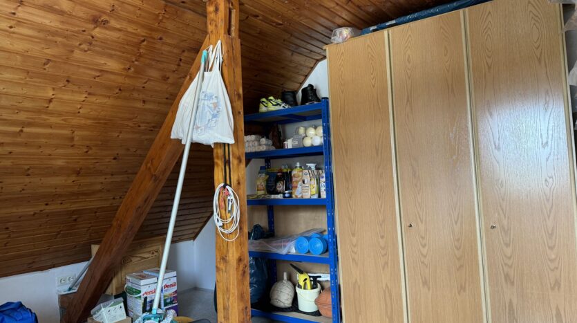 De zolder is gedeeltelijk afgewerkt en biedt een bergzolder met uitbreidingsmogelijkheden, wat volop mogelijkheden biedt voor extra woonruimte. Deze ruimte kan verder worden uitgebreid om extra woonruimte te creëren of indien nodig voor andere doeleinden worden gebruikt.