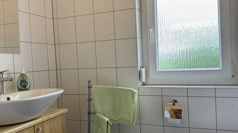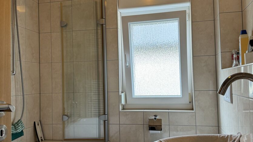 Im Obergeschoss finden Sie einen Flur, der zu einem klassischem Wannenbad führt, das sich in einem sehr gepflegtem Zustand befindet. Außerdem befinden sich hier drei Wohn- bzw. Schlafräume, die ausreichend Platz für Ihre Familie bieten. Diese Zimmer können individuell genutzt werden, ob als Schlafzimmer, Kinderzimmer oder Arbeitsräume – hier ist für jeden Bedarf etwas dabei.