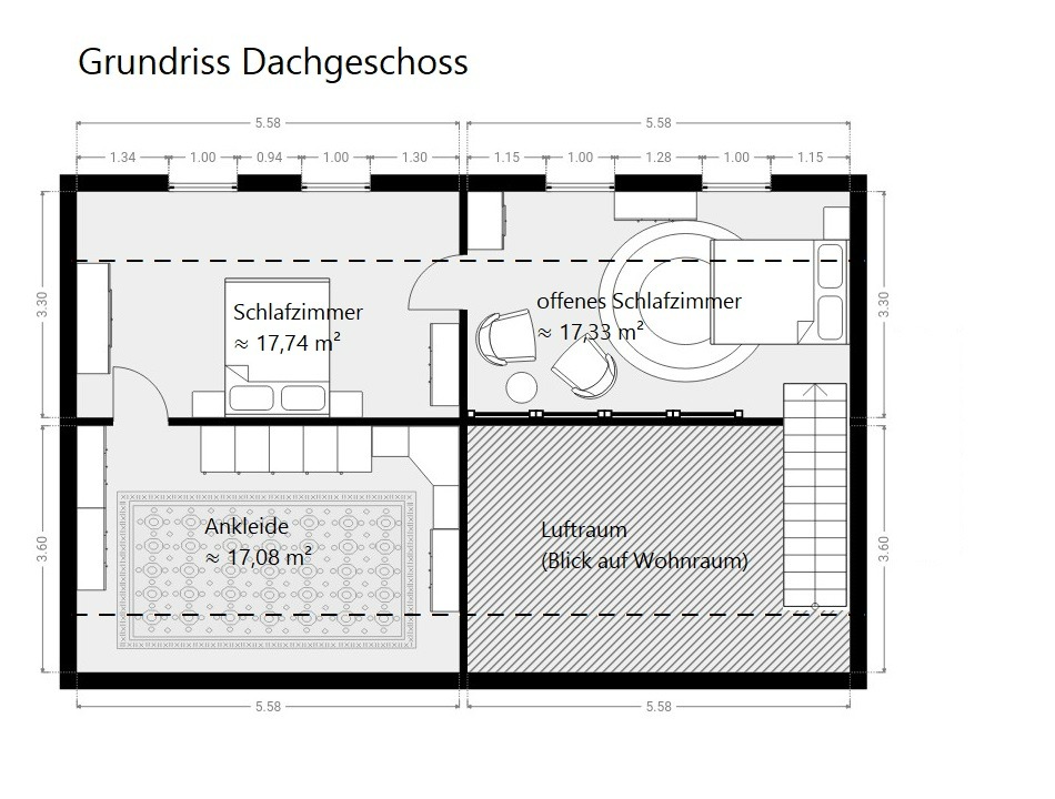 Im OG lässt es sich gemütlich wohnen mit Zugang
