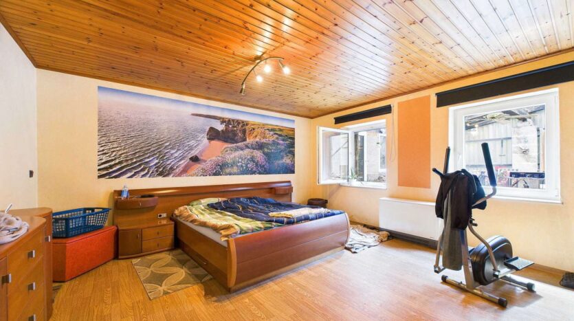 Im Jahr 1982 wurde das Haus um einen großzügigen Anbau erweitert, wodurch das gesamte Objekt heute über eine beeindruckende Größe und Raumvielfalt verfügt. Es eignet sich ideal als Mehrgenerationenhaus, Wohn- und Geschäftshaus oder zur Entwicklung eines Mehrfamilienhauses mit Potenzial für drei bis vier Wohneinheiten. Insgesamt verfügt das Gebäude über drei separate Eingänge, sodass eine klare Trennung der Wohneinheiten ohne größere Umbaumaßnahmen möglich ist. Denkbar wäre eine Wohnung im Erdgeschoss (ehemalige Gaststätte) sowie zwei weitere im Obergeschoss – je eine im Altbau und eine im Anbau.