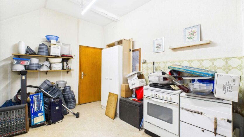 Ein besonderes Plus sind die Nebengebäude: Direkt neben dem Haus befindet sich eine große, ehemals landwirtschaftlich genutzte Scheune, die aktuell als Garage dient. Daneben gibt es eine Stallung, die sich hervorragend zur Unterbringung von Fahrrädern oder Mülltonnen eignet. Für Interessenten mit konkretem Bedarf an Parkflächen bietet sich sogar die Möglichkeit, die Scheune abzureißen und durch zwei moderne Garagen zu ersetzen – entsprechende Genehmigungen vorausgesetzt.