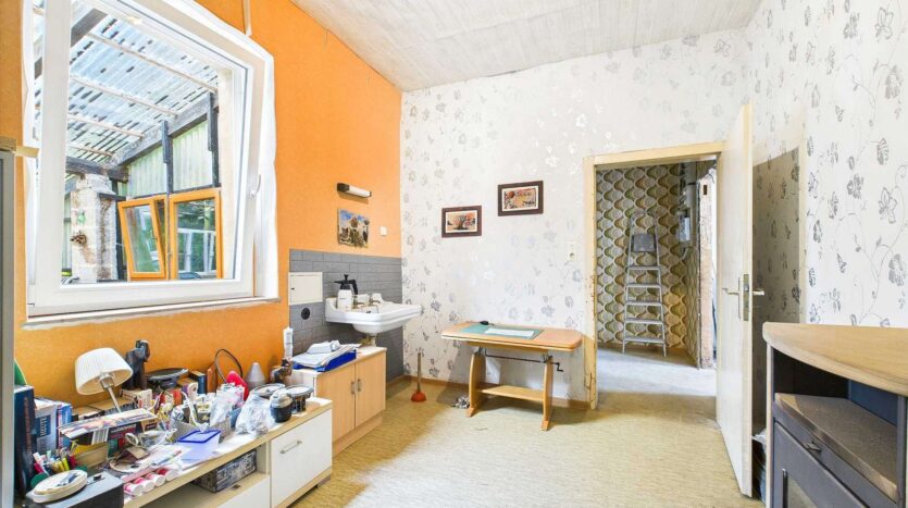 Ursprünglich wurde das Gebäude im Jahr 1905 errichtet und beherbergte im Erdgeschoss über viele Jahrzehnte eine gemütliche Gaststätte. Der ehemalige Gästebereich mit Theke, Toiletten und einer kleinen Küche ist heute teilweise in Nutzung als Hobbyraum – die ursprüngliche Struktur und der Charakter des Bereichs sind dabei weitgehend erhalten geblieben und bieten kreativen Käufern zahlreiche Optionen für eine Umgestaltung.