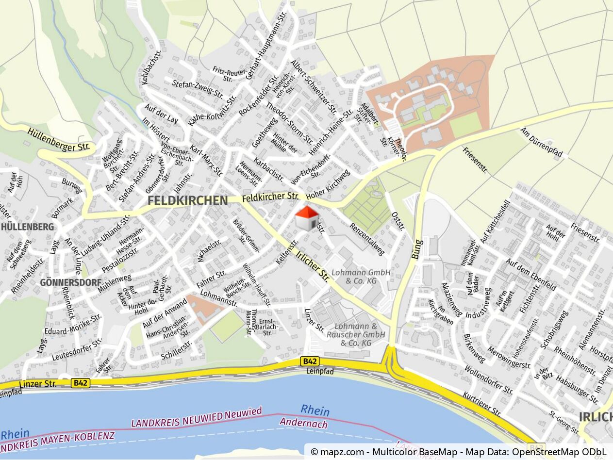 Neuwied ist eine charmante Stadt im Bundesland Rheinland-Pfalz, die am rechten Ufer des Rheins liegt. Die Stadt befindet sich etwa 20 Kilometer nordwestlich von Koblenz und ist Teil der Metropolregion Rhein-Ruhr. Neuwied zeichnet sich durch eine attraktive Lage aus, die sowohl naturnahe Erholung als auch eine gute Anbindung an städtische Zentren bietet. Die Stadt ist von einer malerischen Landschaft umgeben, die durch den Rhein, die umliegenden Hügel und Wälder geprägt ist. Diese natürliche Umgebung bietet zahlreiche Freizeitmöglichkeiten, darunter Wander- und Radwege, die zu Erkundungstouren in der Natur einladen. Der nahegelegene Rhein lädt zudem zu Aktivitäten wie Bootfahren und Angeln ein. Neuwied verfügt über eine gute Verkehrsanbindung. Die Stadt ist über die Bundesstraße B256 und die Autobahn A48 gut erreichbar, was eine schnelle Anbindung an die umliegenden Städte und Regionen ermöglicht. Zudem gibt es regelmäßige Zugverbindungen, die Neuwied mit Koblenz und anderen Städten verbinden, was die Mobilität der Bewohner erhöht. Die Innenstadt von Neuwied bietet eine Vielzahl von Einkaufsmöglichkeiten, Restaurants, Cafés und kulturellen Einrichtungen. Hier finden regelmäßig Veranstaltungen und Märkte statt, die das Stadtleben bereichern. Die Stadt hat auch eine gute Infrastruktur mit Schulen, Kindergärten und medizinischen Einrichtungen, die den Bedürfnissen der Bewohner gerecht werden. Neuwied ist bekannt für seine freundliche und lebendige Gemeinschaft. Die Stadt hat eine lange Geschichte, die sich in der Architektur und den zahlreichen historischen Gebäuden widerspiegelt. Die Kombination aus urbanem Leben und naturnaher Umgebung macht Neuwied zu einem attraktiven Wohnort für Familien, Paare und Singles. Insgesamt bietet Neuwied eine hohe Lebensqualität, die durch die gelungene Balance zwischen Natur, Freizeitmöglichkeiten und urbanem Komfort geprägt ist. Die Immobilie liegt im Neuwieder Stadtteil Feldkirchen, der sich durch eine sehr gute Infrastruktur und kurze Wege im Alltag auszeichnet. Kirchen, Schulen, Kindergarten, Banken, Apotheken, Friseure sowie Haus- und Zahnärzte befinden sich in unmittelbarer Nähe. Auch Einkaufsmöglichkeiten für den täglichen Bedarf sind schnell erreichbar. Darüber hinaus laden die zahlreichen Ausflugslokale in den umliegenden Weinbergen zu Freizeit, Erholung und geselligen Stunden ein und unterstreichen den hohen Wohn- und Freizeitwert der Lage.