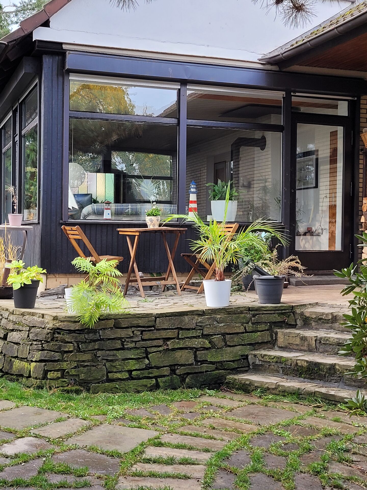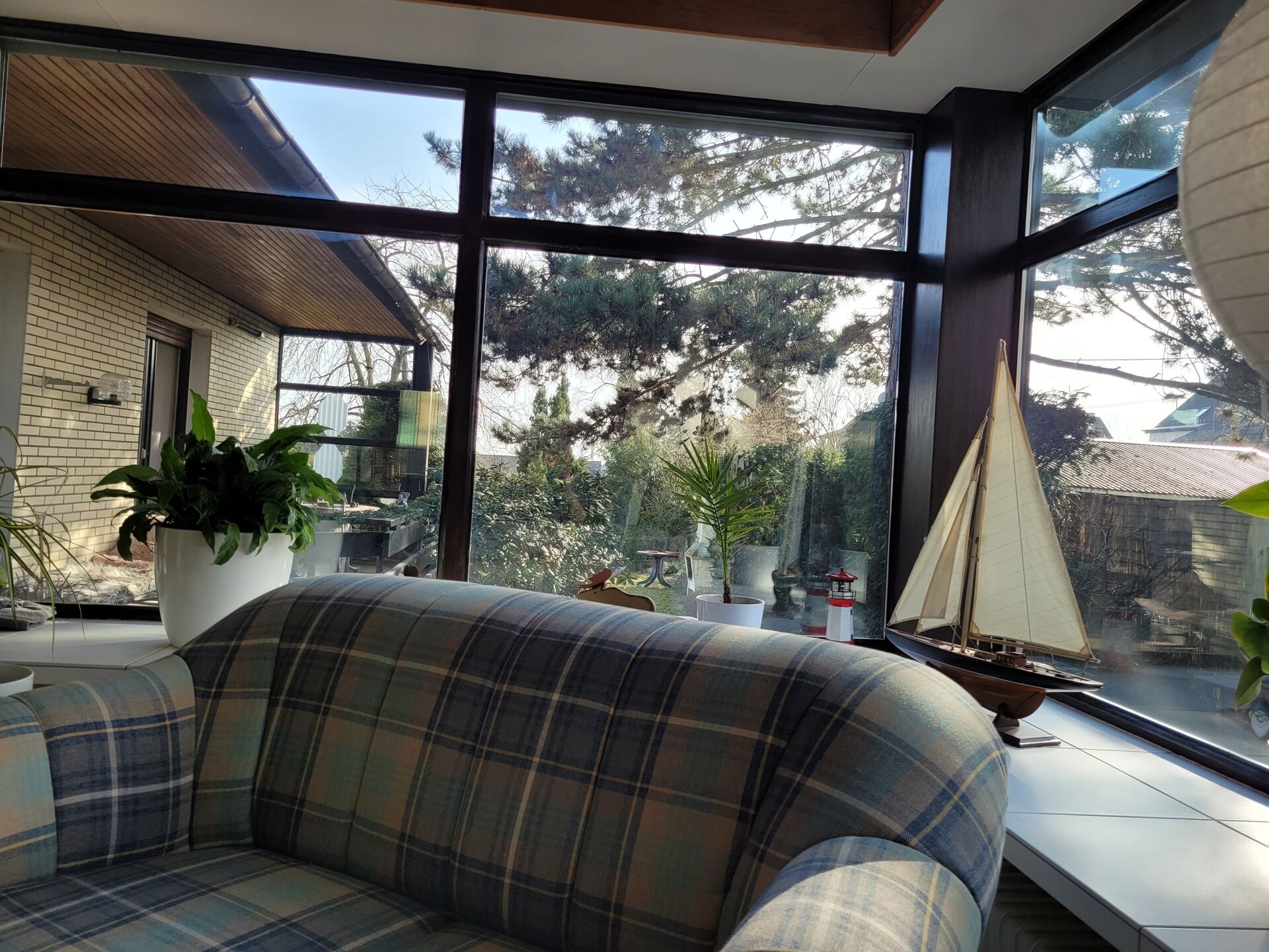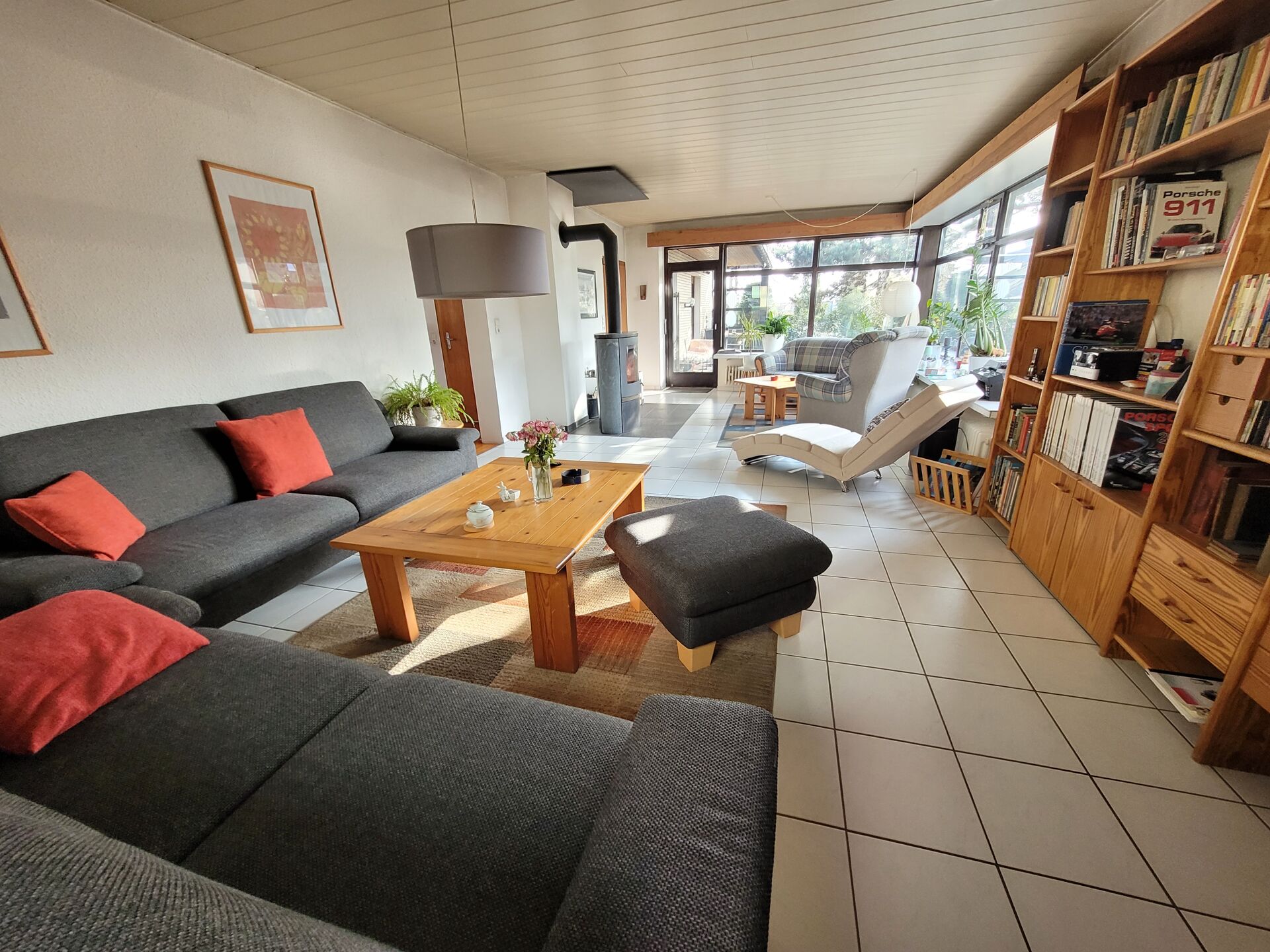Das Herzstück ist das lichtverwöhnte Wohnzimmer: Große Fensterfronten holen die Natur direkt ins Haus und bieten einen unverbaubaren Blick in den grünen Garten. Ein knisternder Kaminofen sorgt an kühlen Abenden für wohlige Wärme und echte Geborgenheit. Besonders beruhigend für Käufer: Das Haus wurde seinerzeit von einem Bauingenieur für den Eigenbedarf geplant – hier trifft solide Bauqualität auf eine durchdachte Wohlfühlatmosphäre.