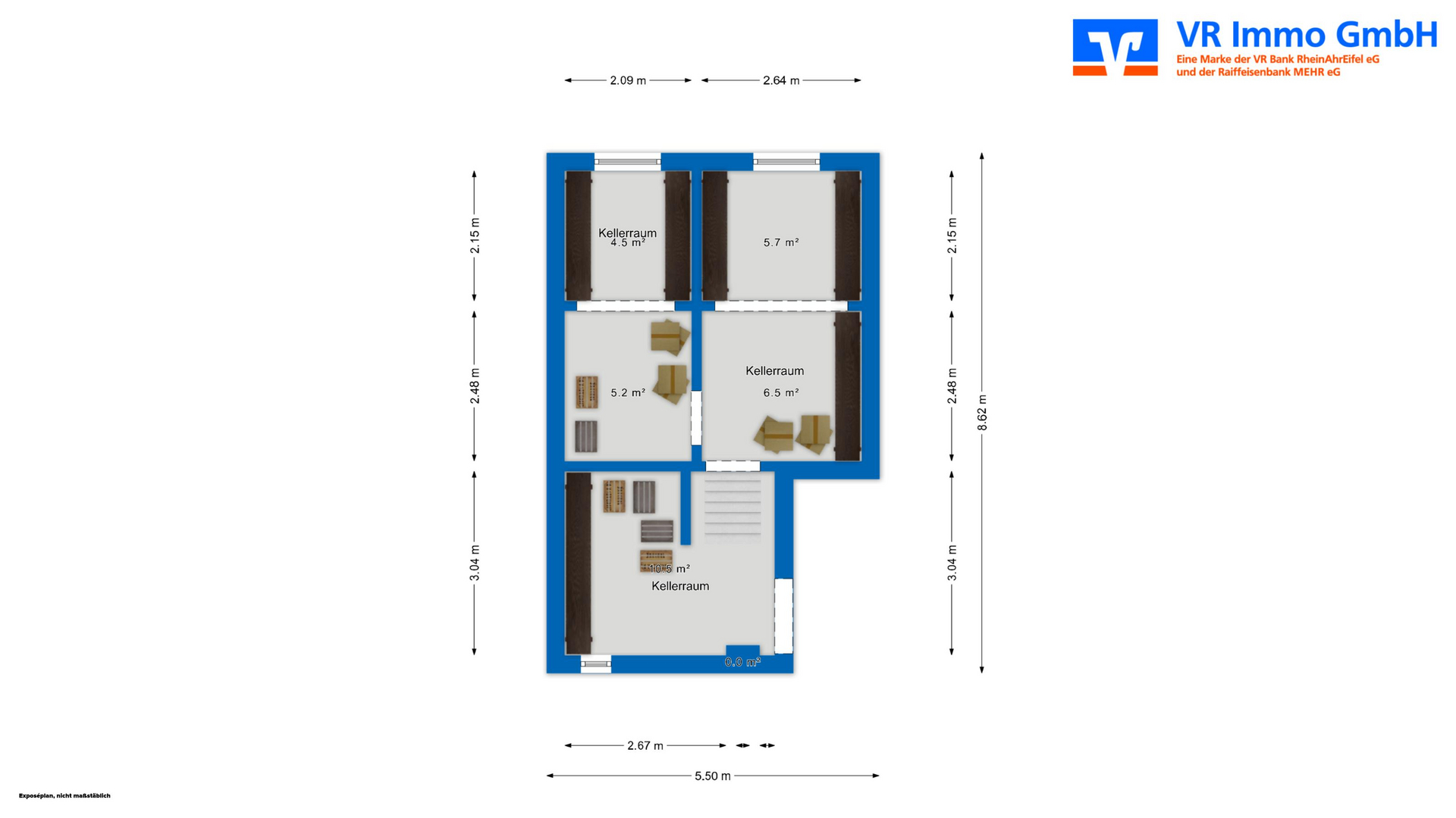 insgesamt 3 Kellerräume mit niedriger Deckenhöhe