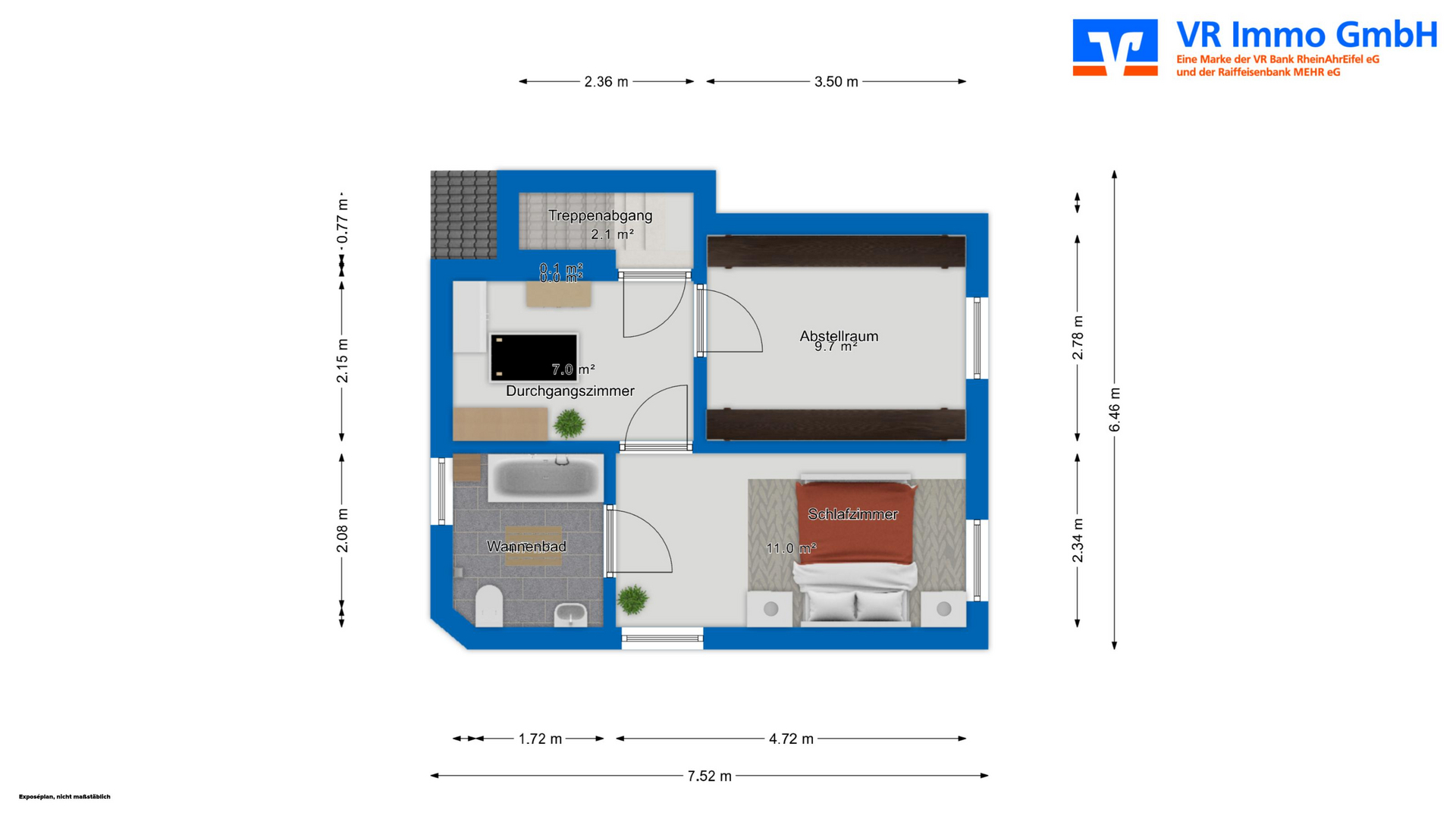 Flur; 2 Schlafzimmer; Wannenbad und Abstellraum mit Zugang zum Spitzboden