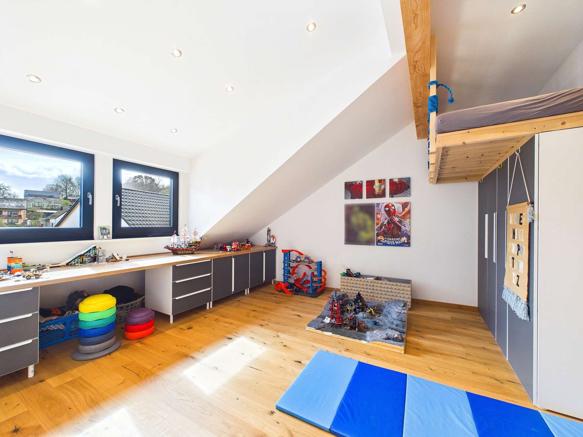 Zusätzlichen Gestaltungsspielraum bietet der rechte Teil des Hauses, der sich derzeit noch im Rohbauzustand befindet und aktuell als Hobbyraum genutzt wird. Dank separatem Eingang sowie Zugang über den Wintergarten eröffnet sich hier ein außergewöhnlich flexibles Nutzungspotenzial, sei es als zusätzliche Wohnfläche, Atelier, Büro, Wellnessbereich oder individueller Rückzugsort. Hier können Sie Ihre Vorstellungen auf exklusive Weise verwirklichen und dem Haus eine weitere ganz persönliche Note verleihen.