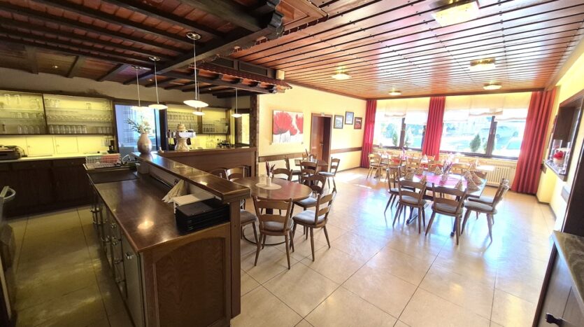 Die Gastronomie im Erdgeschoss und in den Kellern wird durch die Eigentümer betrieben. Dieser Bereich kann beim Ankauf vom zukünftigen Eigentümer entweder selbst betrieben oder verpachtet werden. Alternativ wäre auch eine Umnutzung zu weiteren Wohneinheiten oder anderweitige gewerbliche Nutzung denkbar.