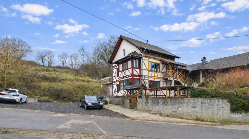 Verhoogde ligging: Goed onderhouden huis met uitzicht en twee garages te koop in Müsch