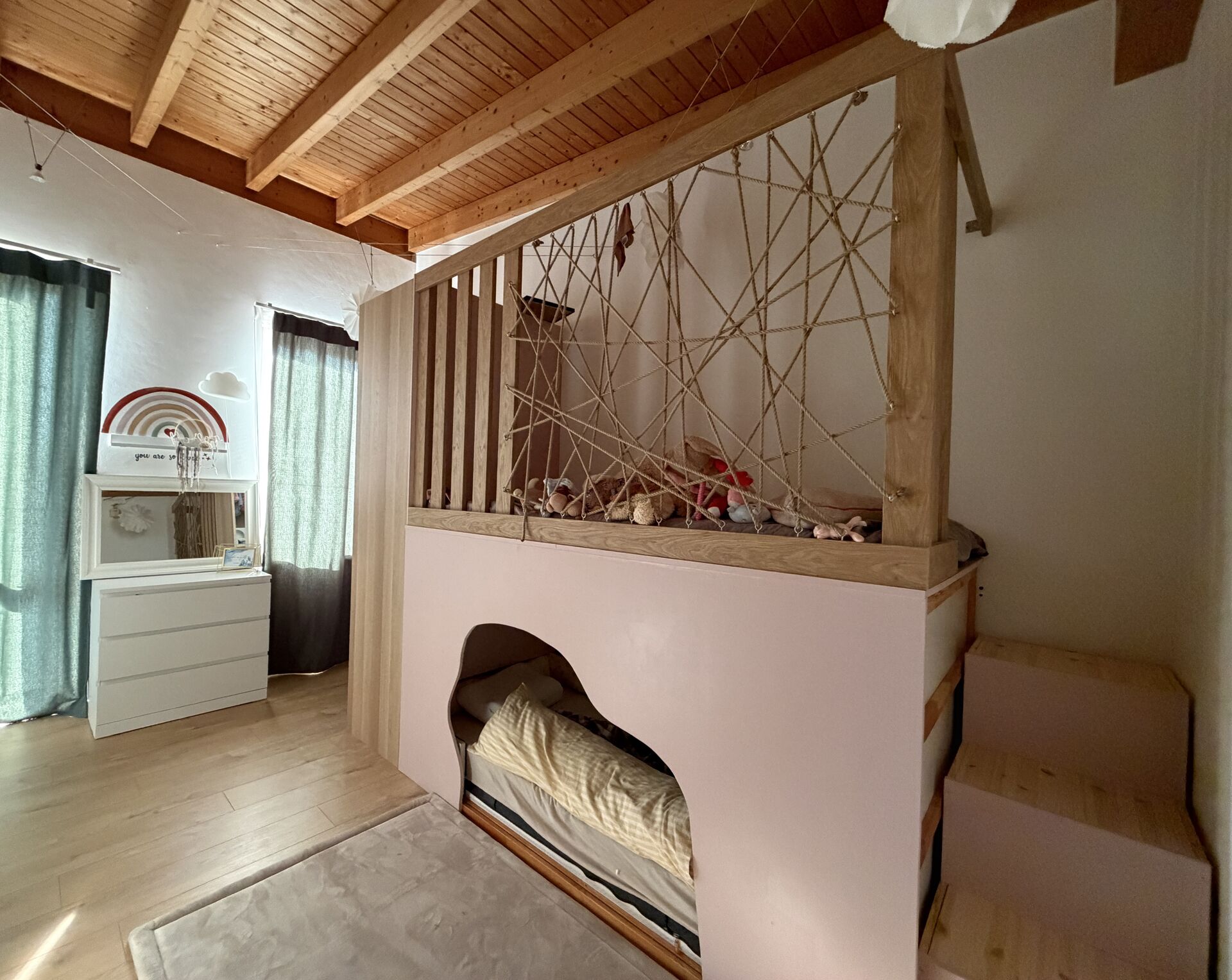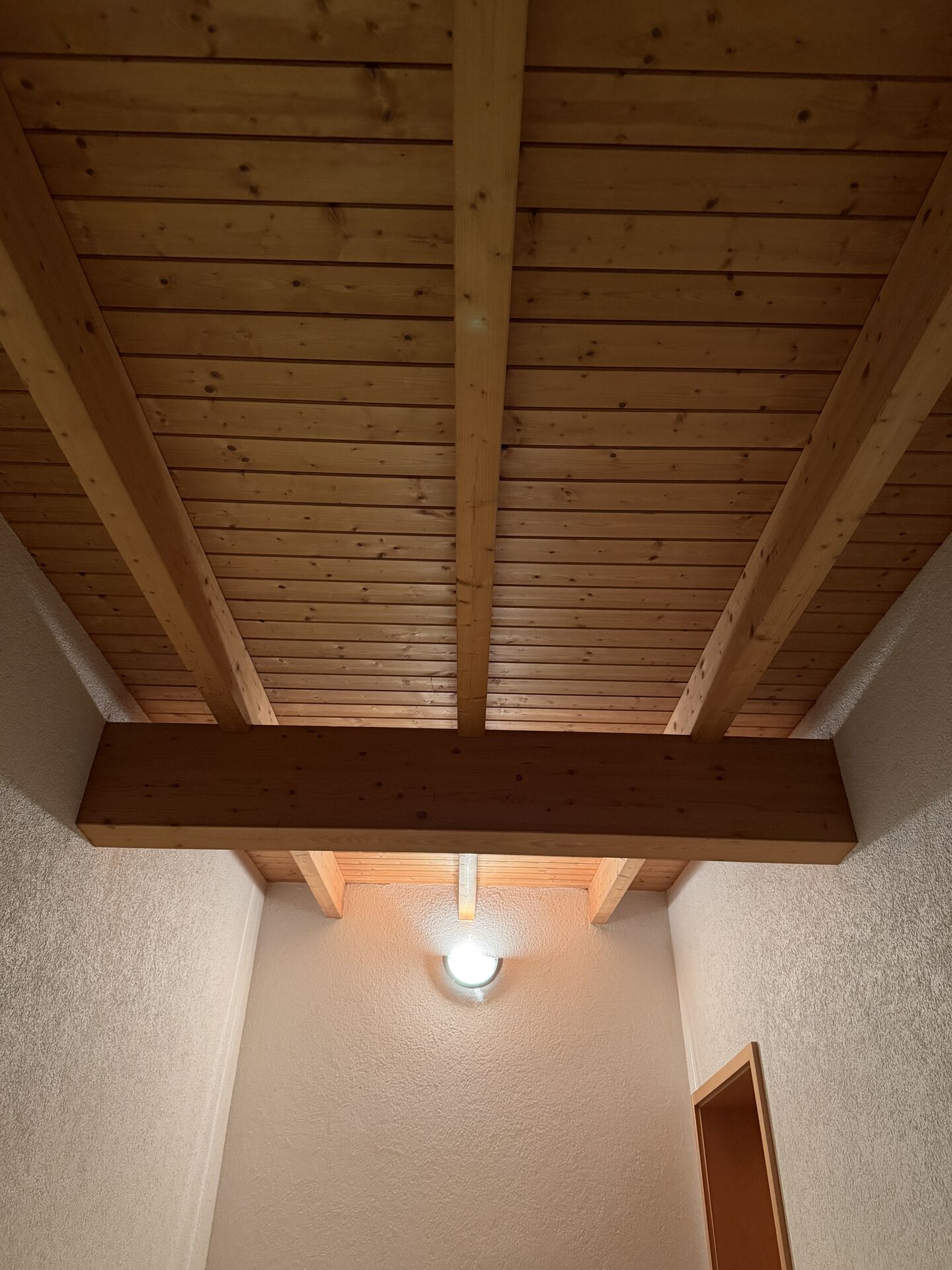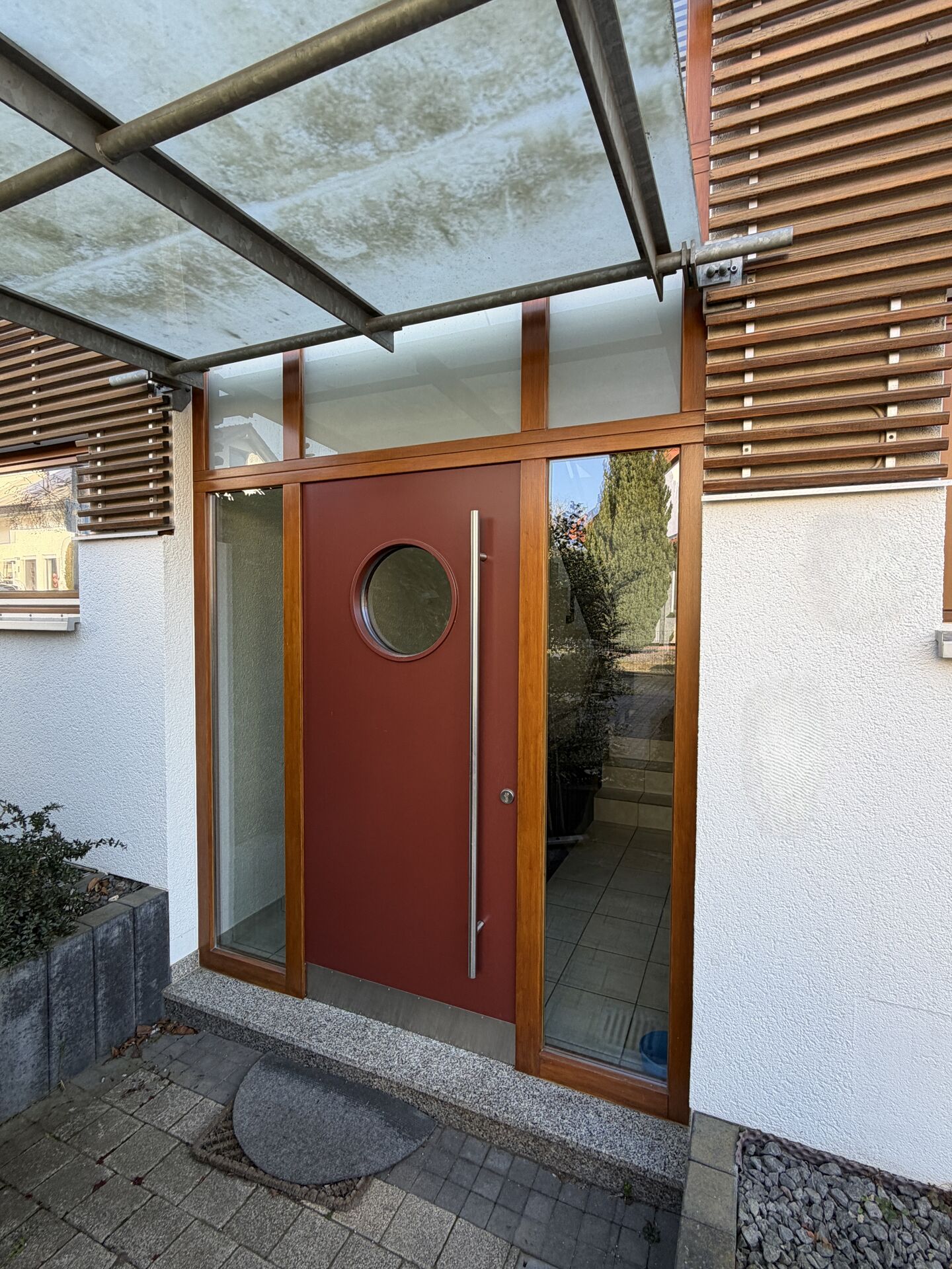 massiv, verputzt und gestrichen, Echthholzverkleidung an der Hausfront