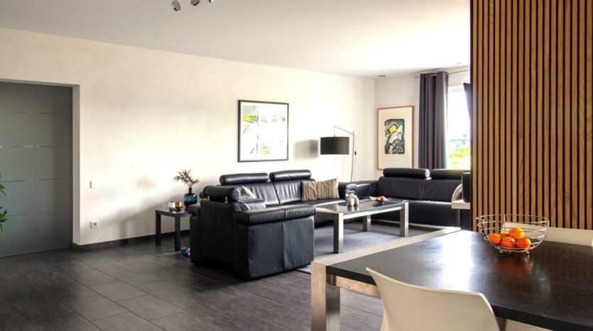 De woning wordt verwarmd door een lucht-warmtepomp. De zelfopgewekte elektriciteit van het PV-systeem voedt de warmtepomp en de wallbox. Overtollige elektriciteit wordt teruggeleverd aan het net. Deze state-of-the-art gebouwtechnologie wordt aangevuld met een ventilatiesysteem met warmteterugwinning en een BUS-systeem.