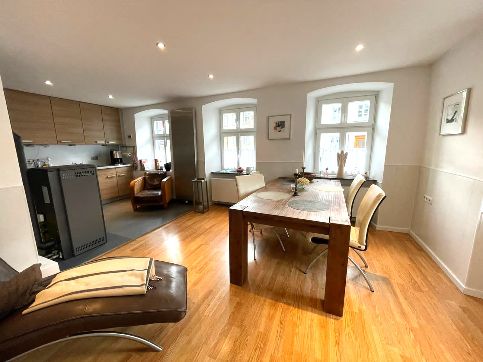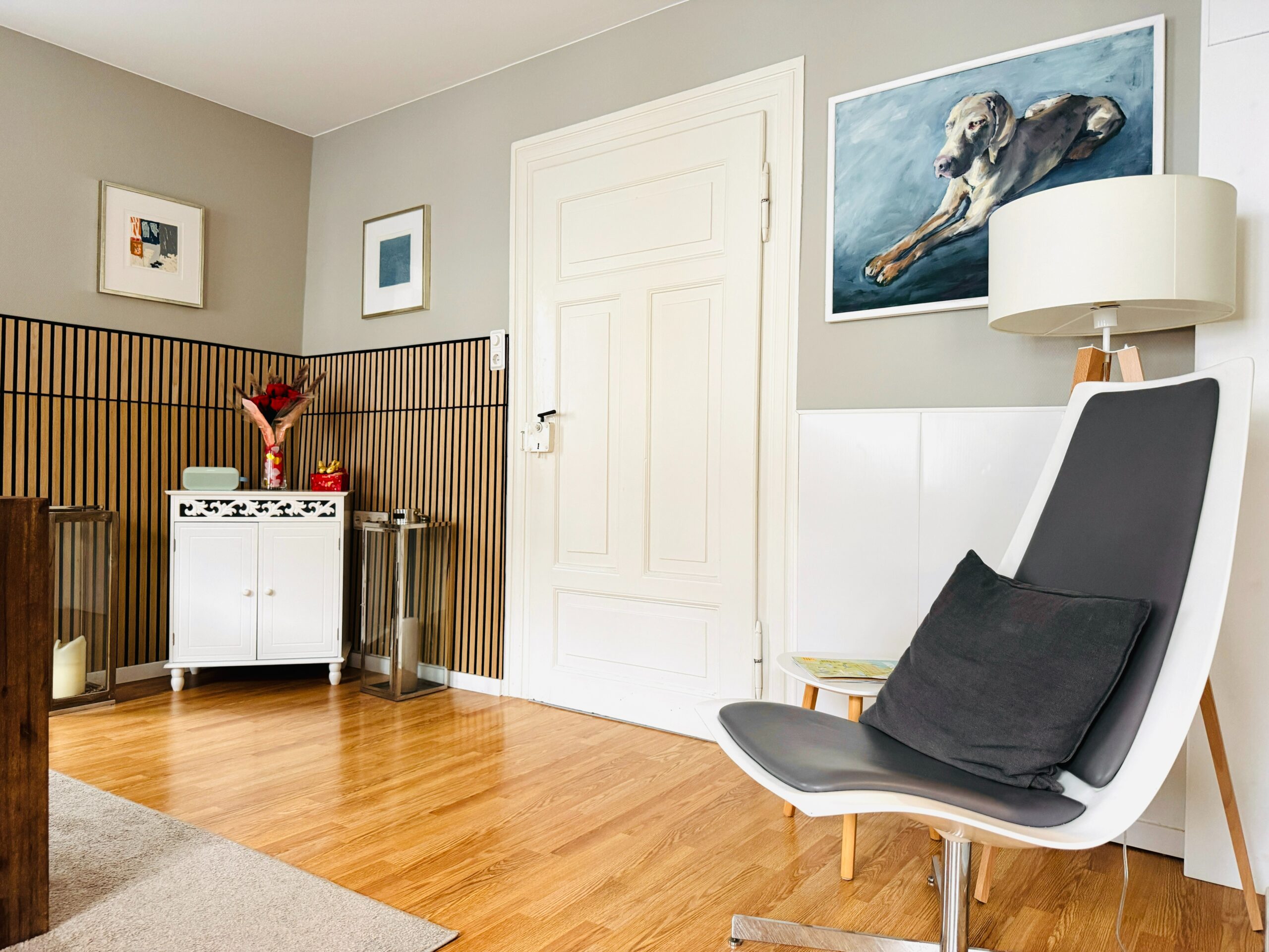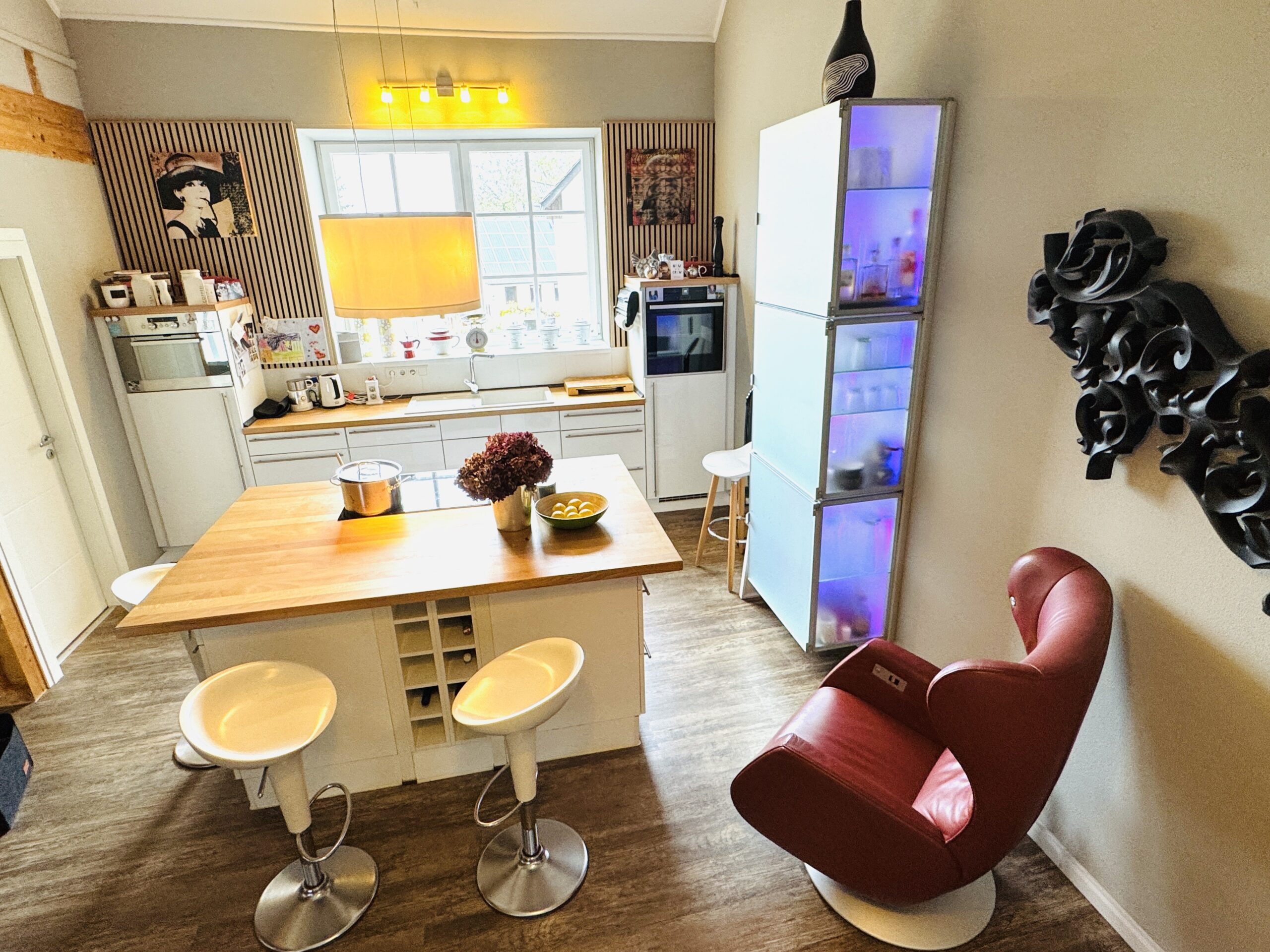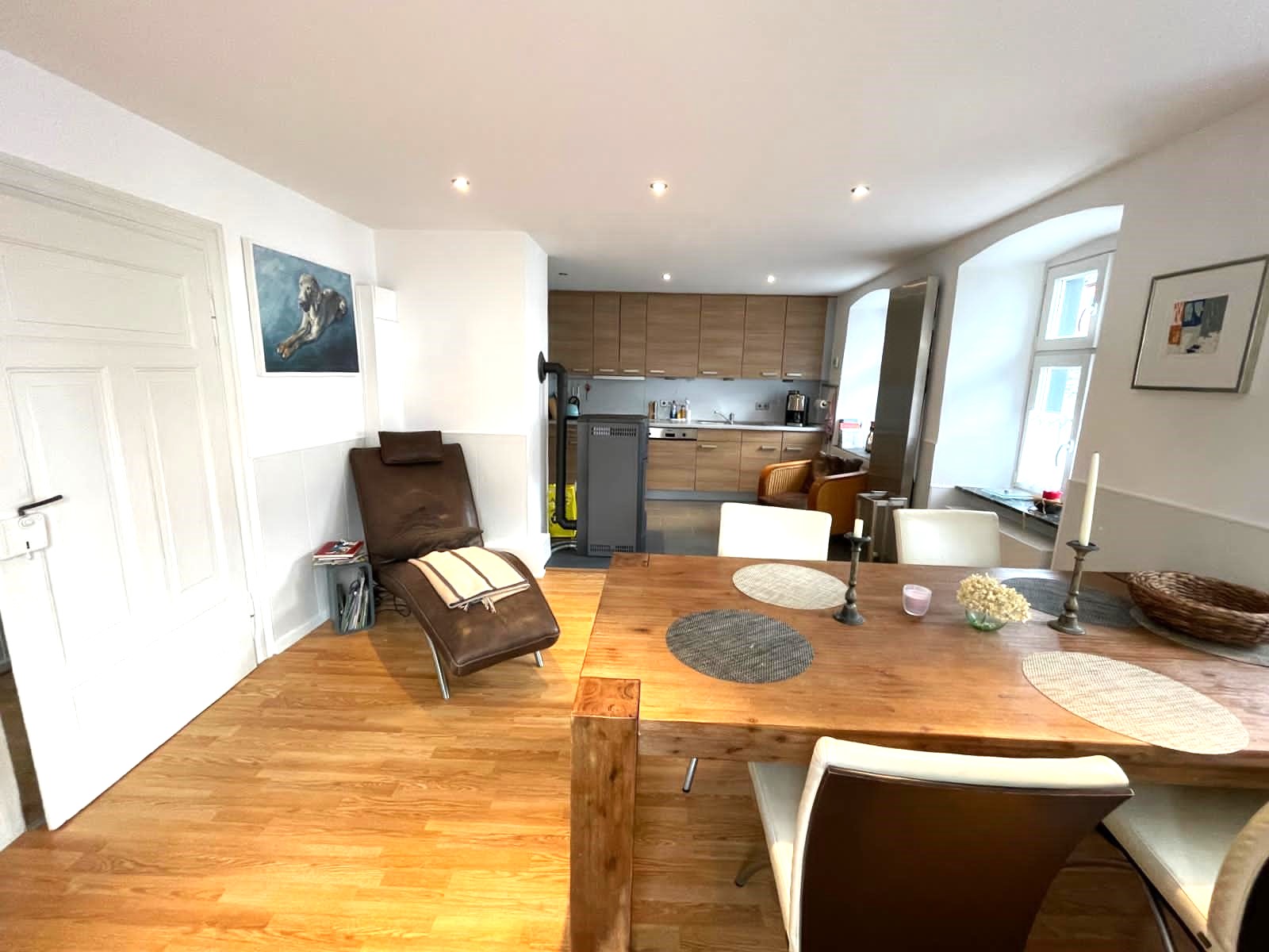 Hier creëren stijl, authentieke details en een loft-achtige sfeer een knusse symbiose voor twee personen of het hele gezin, aangezien de oorspronkelijke oude pastorie is omgebouwd tot een prachtig, ruim appartement.
