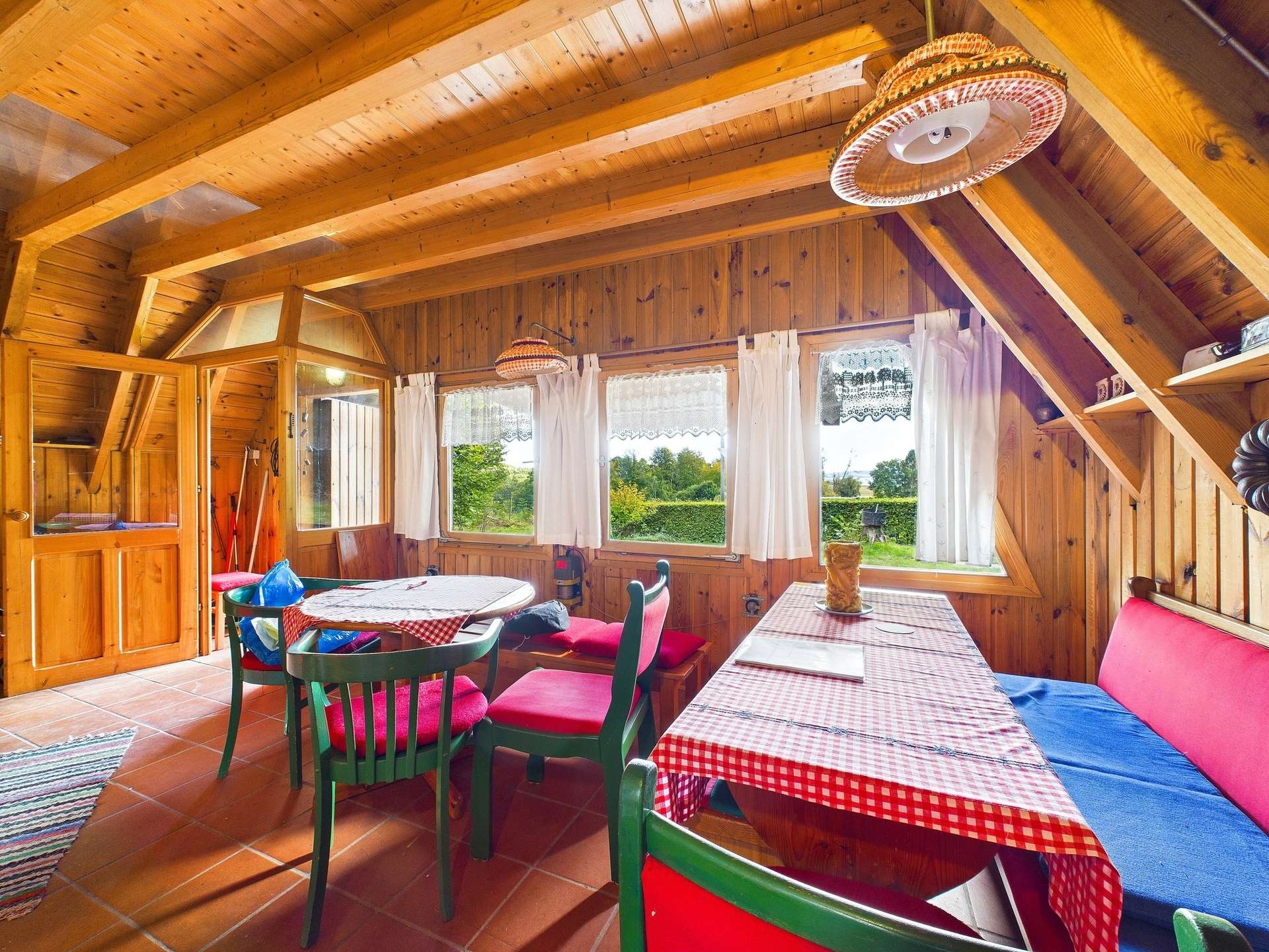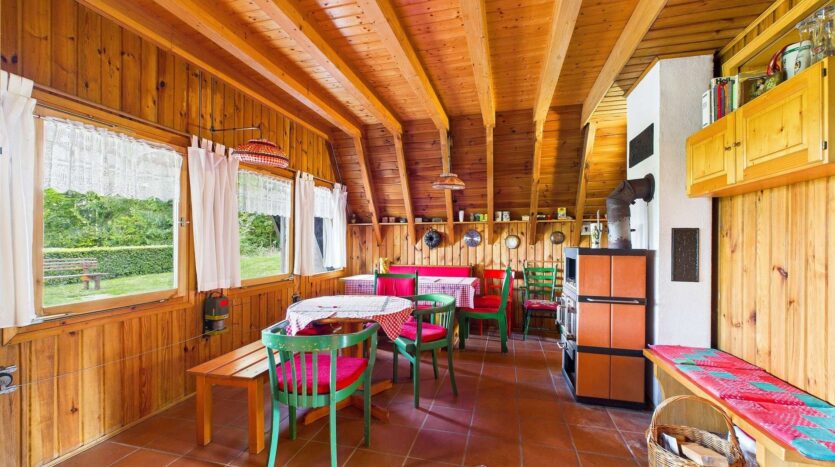 Im Erdgeschoss empfängt Sie ein gemütlicher Wohn-Essbereich mit Kaminofen – der perfekte Ort, um nach langen Spaziergängen im Wald die Seele baumeln zu lassen. Direkt angrenzend befindet sich die kleine, mit Gas betriebene Küche. Ergänzt wird diese Ebene durch ein WC. Eine klassische Dusche ist aktuell nicht vorhanden, die Wasserversorgung erfolgt über eine Regenwasserzisterne. Für naturverbundene Menschen bietet sich die Möglichkeit, eine praktische Lösung nachzurüsten – beispielsweise durch eine kompakte Außendusche, eine kleine Solardusche oder den Einbau einer cleveren Nasszelle im Haus. So entsteht ein rustikales, aber charmantes Ferienfeeling mit maximaler Nähe zur Natur.