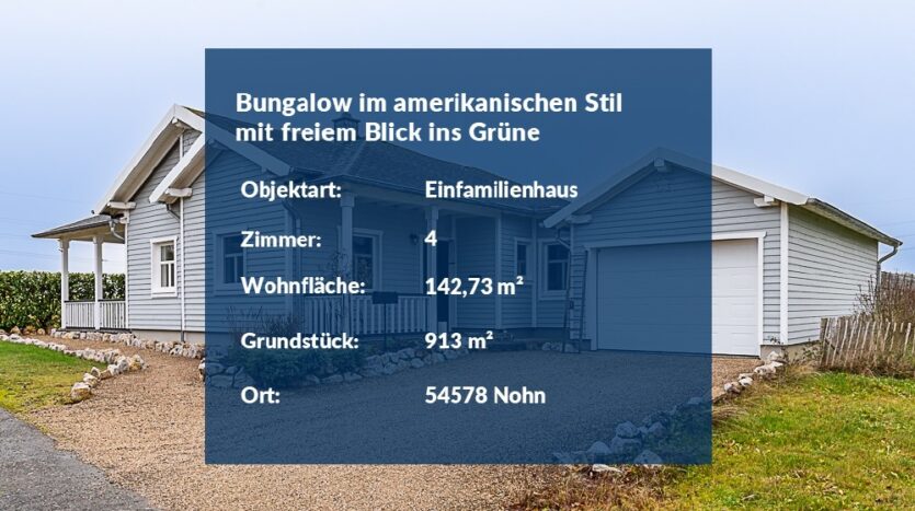 Neuwertiger Bungalow im amerikanischen Stil mit freiem Blick ins Grüne