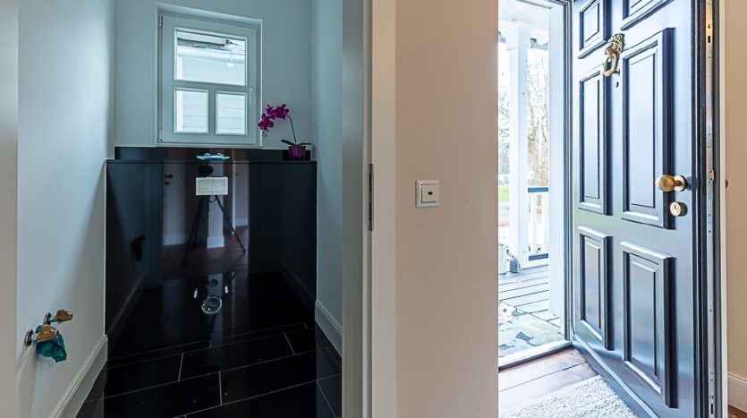 - Garage mit dahinterliegendem Technikraum und Ausgang in den Garten