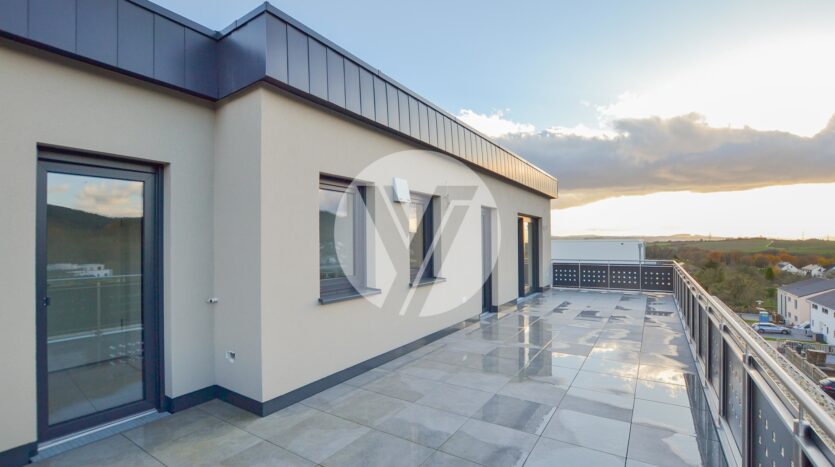 Die Eigentumswohnung Nr. 7 erstreckt sich über insgesamt ca. 107m² Wohnfläche. Sie verfügt über einen großen, lichtdurchfluteten Wohn-Essbereich mit offener Küche und Zugang zu den beiden Dachterrassen, ein Schlafzimmer mit vorgelagerter Ankleide und Tageslichtbad, ein Büro/Gästezimmer, einen Hauswirtschaftsraum sowie ein Gäste-WC. Neben dem Zugang über das Treppenhaus, ist diese Wohnung direkt per Aufzug erreichbar.