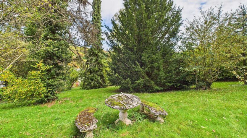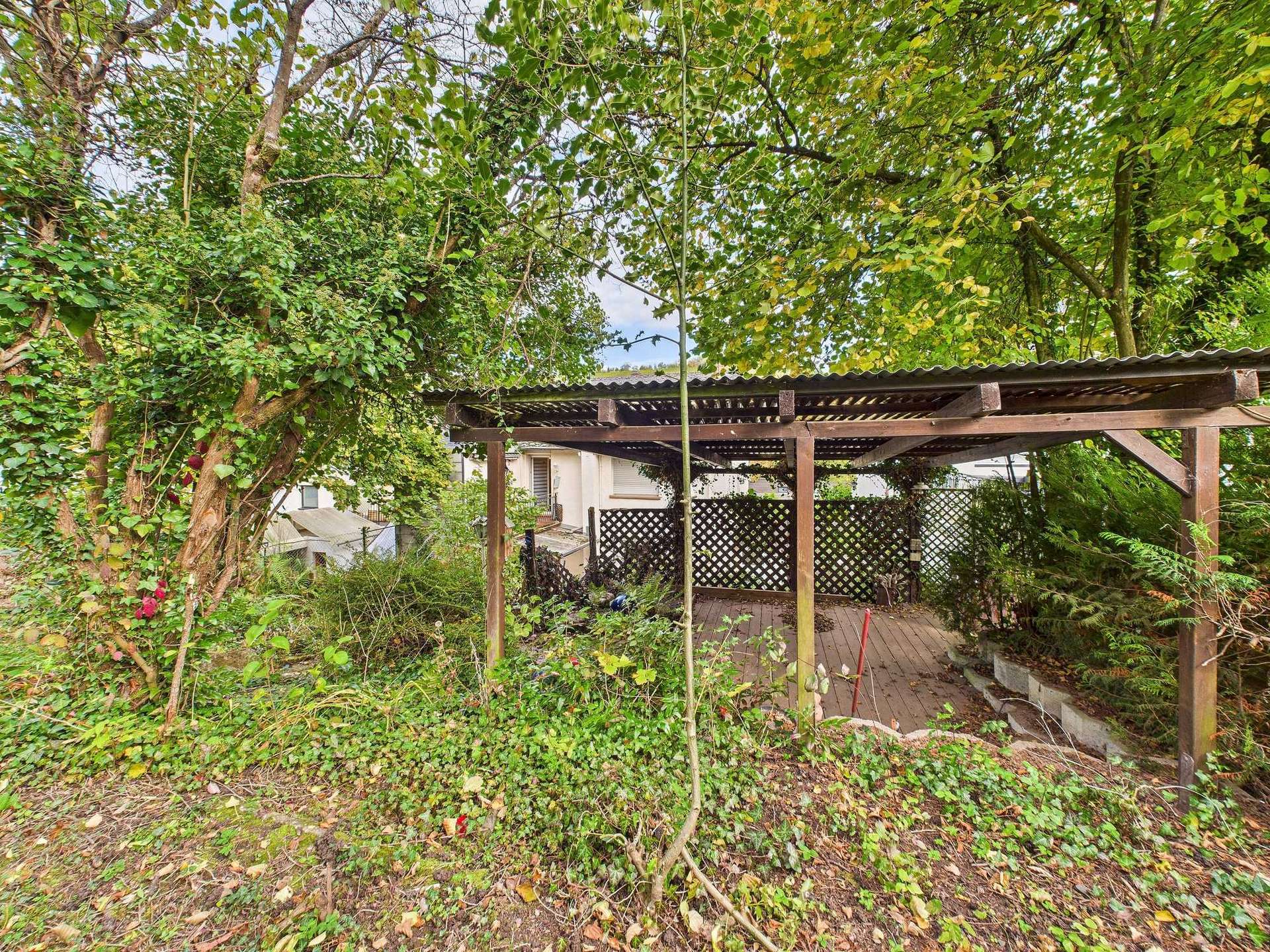Bereits vor dem Haus stehen zwei Stellplätze zur Verfügung. Einer der ehemaligen Kellerräume könnte nach Bedarf zu einer Garage umgestaltet werden. Hinter dem Haus öffnet sich das weitläufige Grundstück mit zwei angelegten Terrassen, das durch seine Hanglage einen herrlichen Blick und vielseitige Gestaltungsmöglichkeiten bietet – perfekt für Gartenliebhaber, Familien oder gemütliche Abende im Freien.