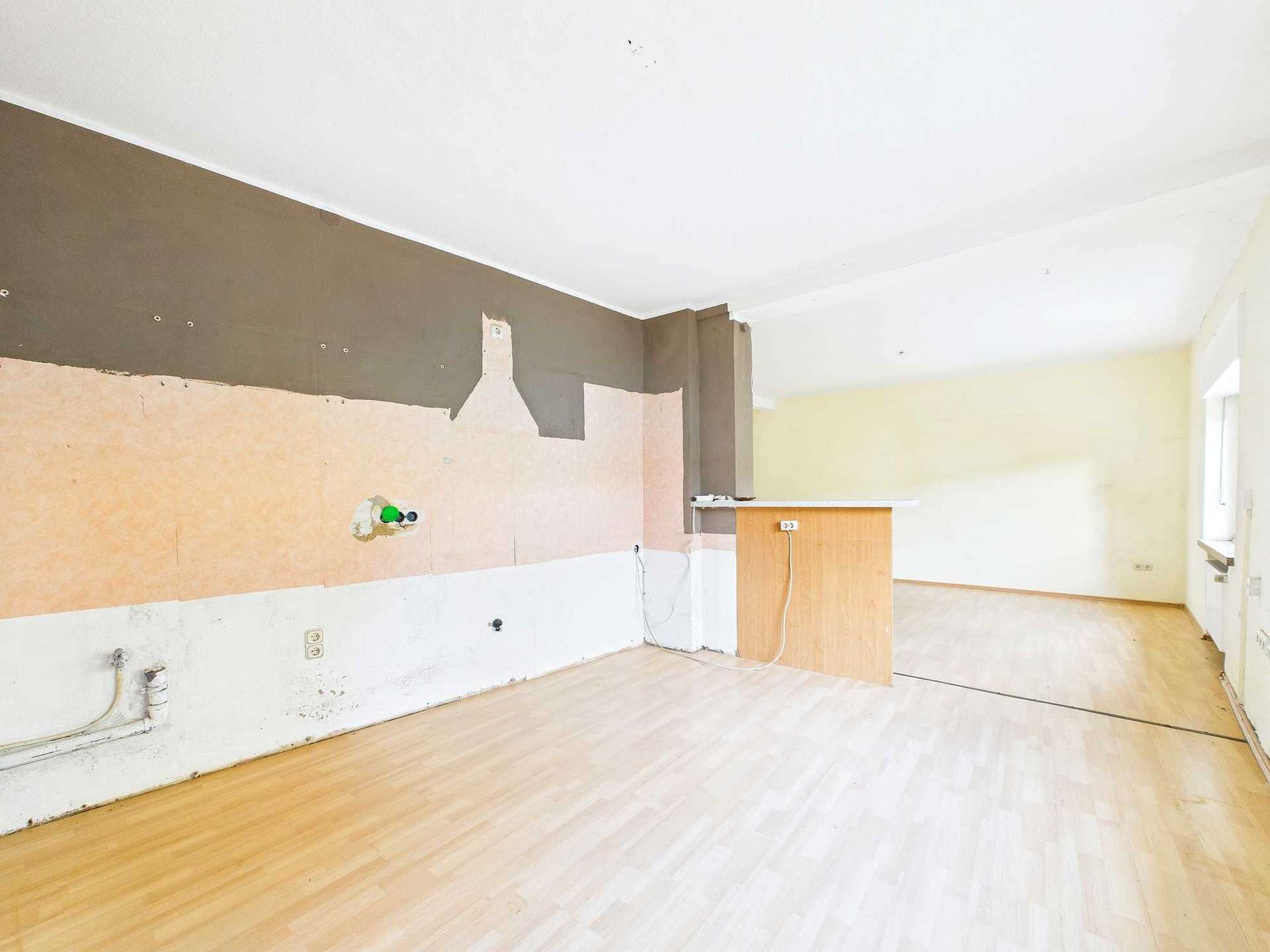 Im Erdgeschoss befindet sich ein großzügiger, offener Wohn- und Essbereich mit integrierter Küche, der dank seiner Raumaufteilung ein besonders wohnliches Ambiente schafft. Ein Kaminanschluss bietet die Möglichkeit, einen Ofen zu installieren und so für zusätzliche Gemütlichkeit zu sorgen. Vom Wohnbereich aus führt eine Tür direkt in den Garten hinter dem Haus. Ebenfalls auf dieser Etage: ein Schlafzimmer sowie ein Tageslichtbad mit Badewanne.