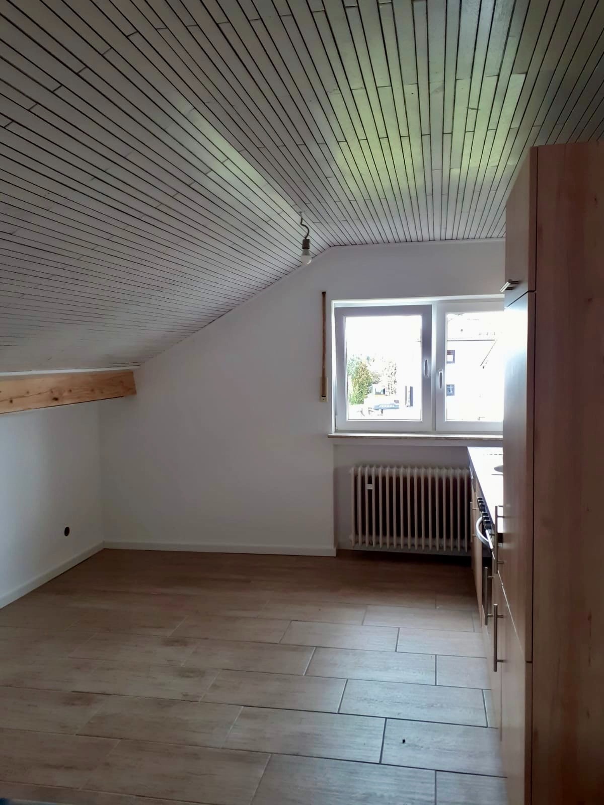 Die Dachgeschosswohnung ist ebenfalls über das separate Treppenhaus zu erreichen und ist im Jahr 2026 komplett renoviert worden. Sie verfügt über eine offene Wohnküche, renoviertes Badezimmer mit Dusche, WC, Waschmaschinenanschluss und Waschbecken. Warmwasser wird ebenfalls über einen Durchlauferhitzer generiert. Weiterhin verfügt die Wohnung über einen Schlaf/- und Ankleidezimmer von wo aus man einen überdachten gefliesten Balkon zur Südseite betreten kann.