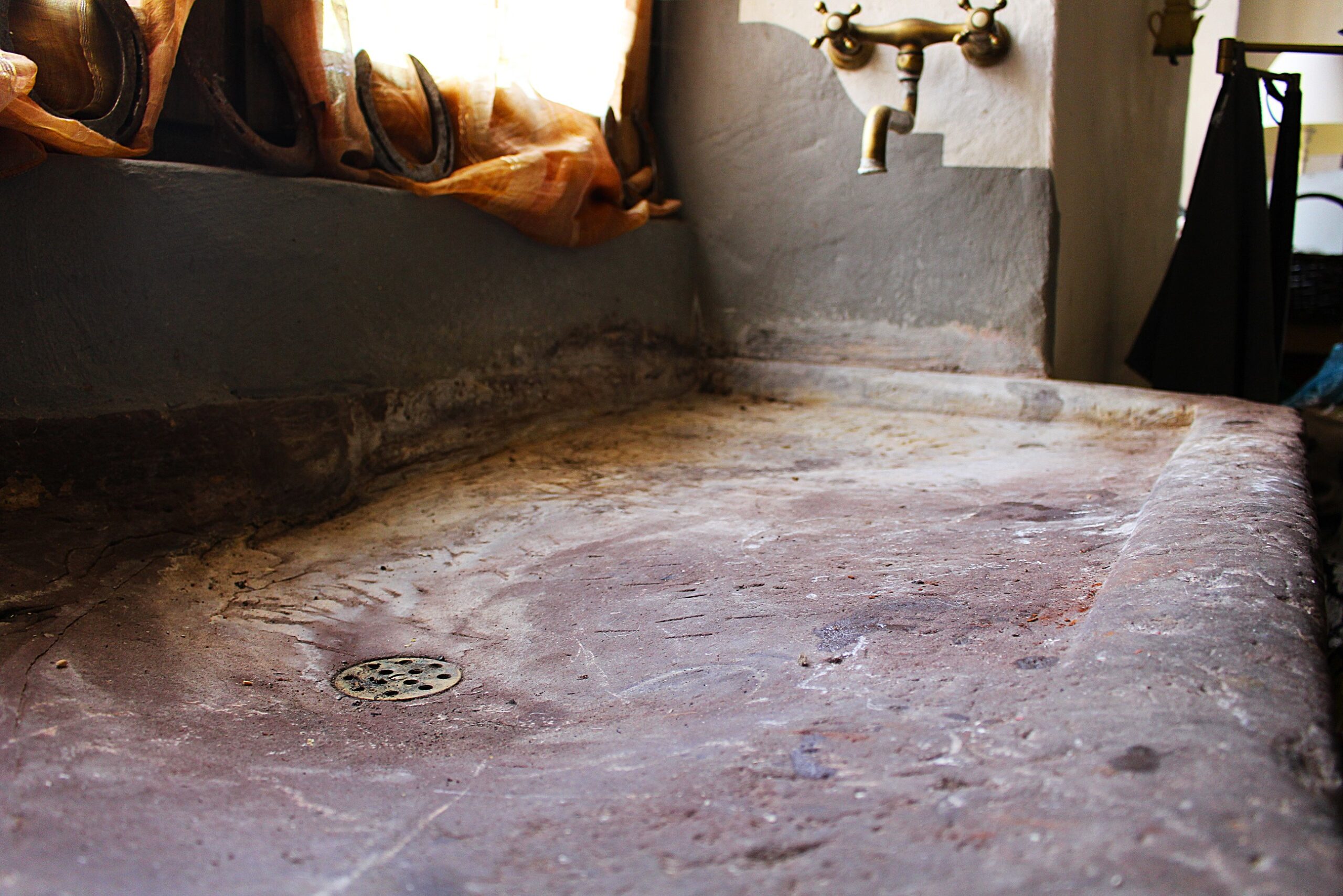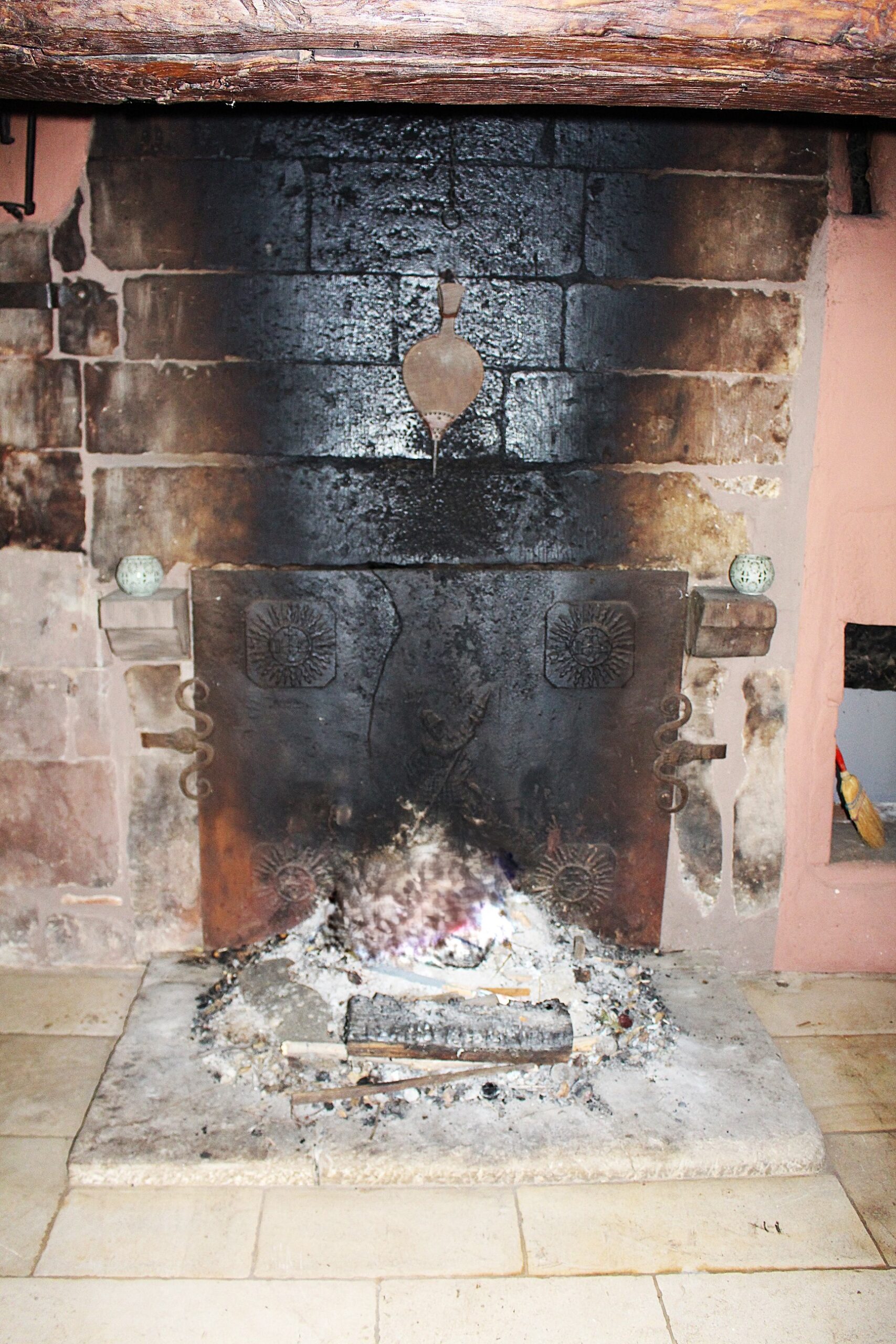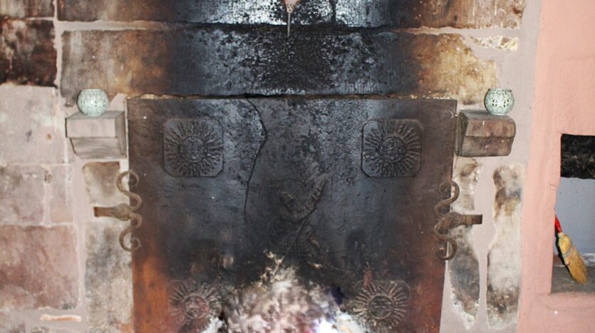 sechs Meter lange Feuerstelle mit gewölbtem Rauchfang,