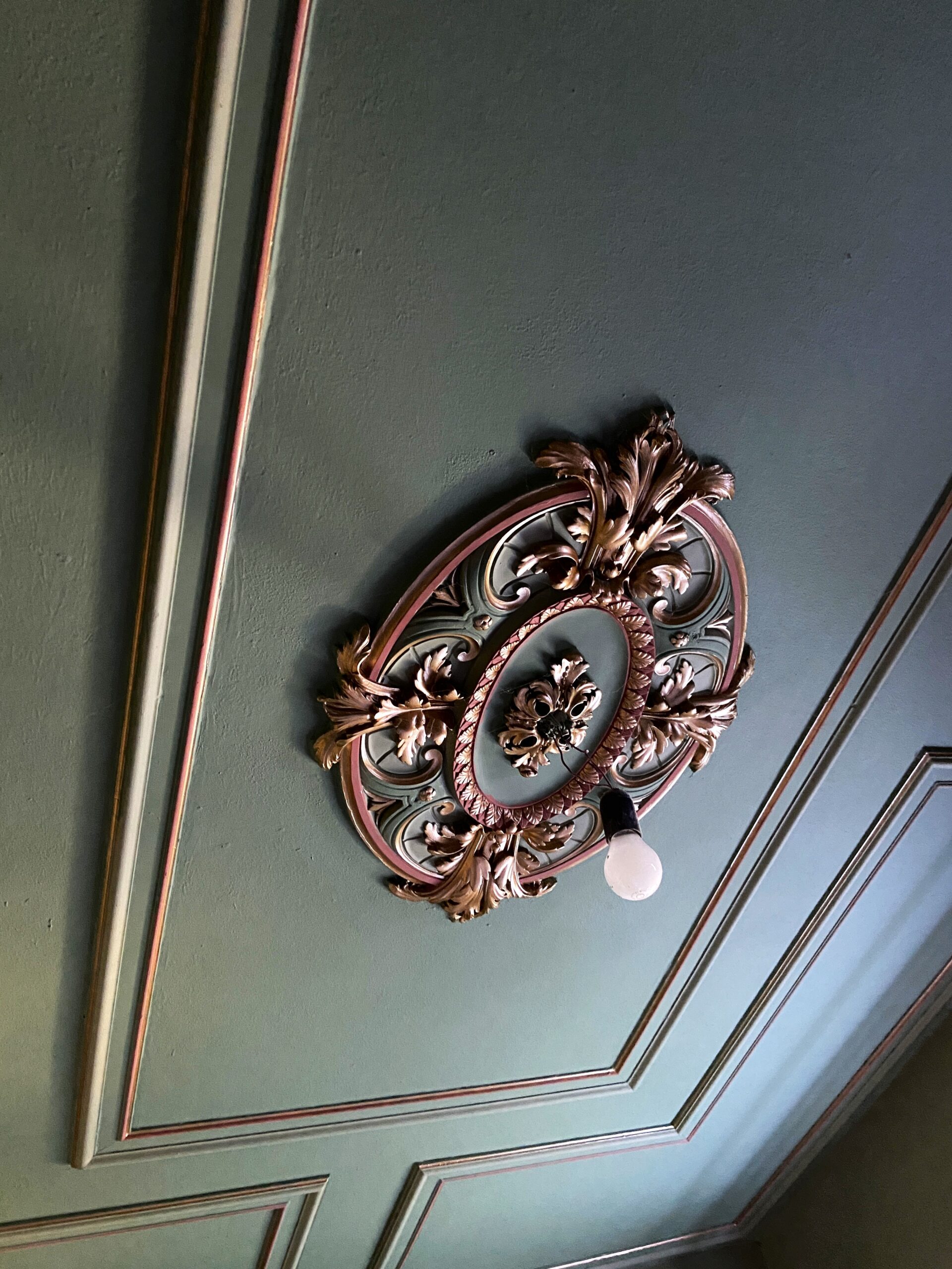 Takkenanlagen im Salon sind ebenfalls gut erhalten.