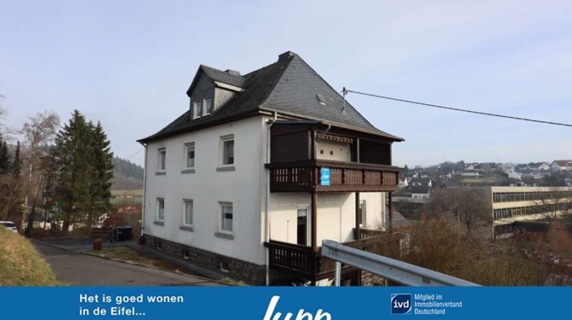Dieses 1928, in massiver Bauweise, gebaute Wohnhaus mit schiefergedecktem Walmdach, besticht mit einer schönen Lage und Aussicht erhaben über den Dächern von Gillenfeld. Das Haus kann als Ein-/ bzw. Zweifamilienhaus genutzt werden. Es liegt im beliebten Eifelort Gillenfeld nahe dem Pulvermaar.