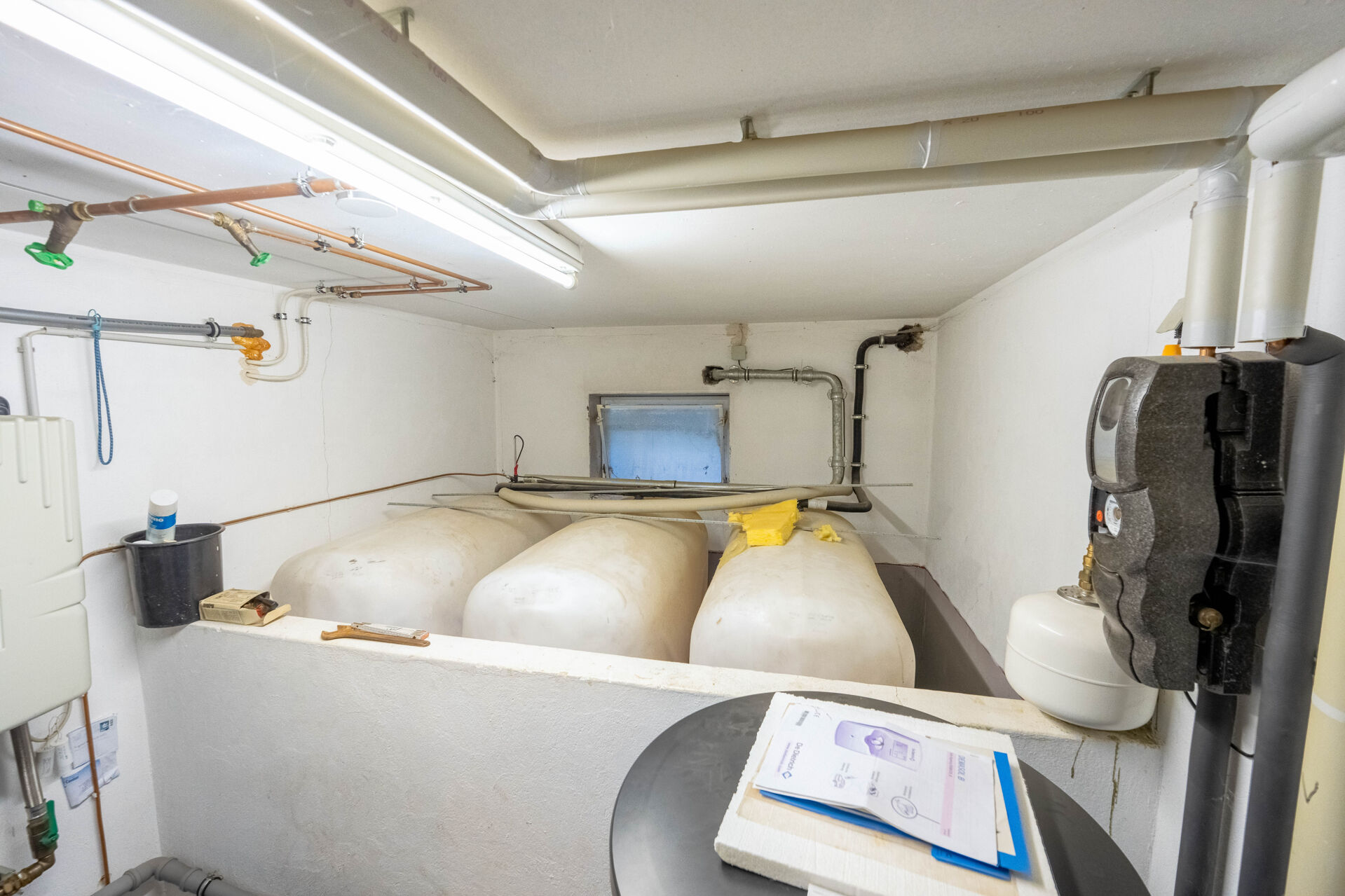 De kelder, met een aparte ingang, bevat extra woon-/hobbyruimtes en een doucheruimte.