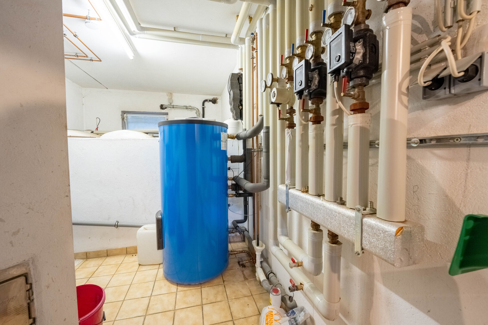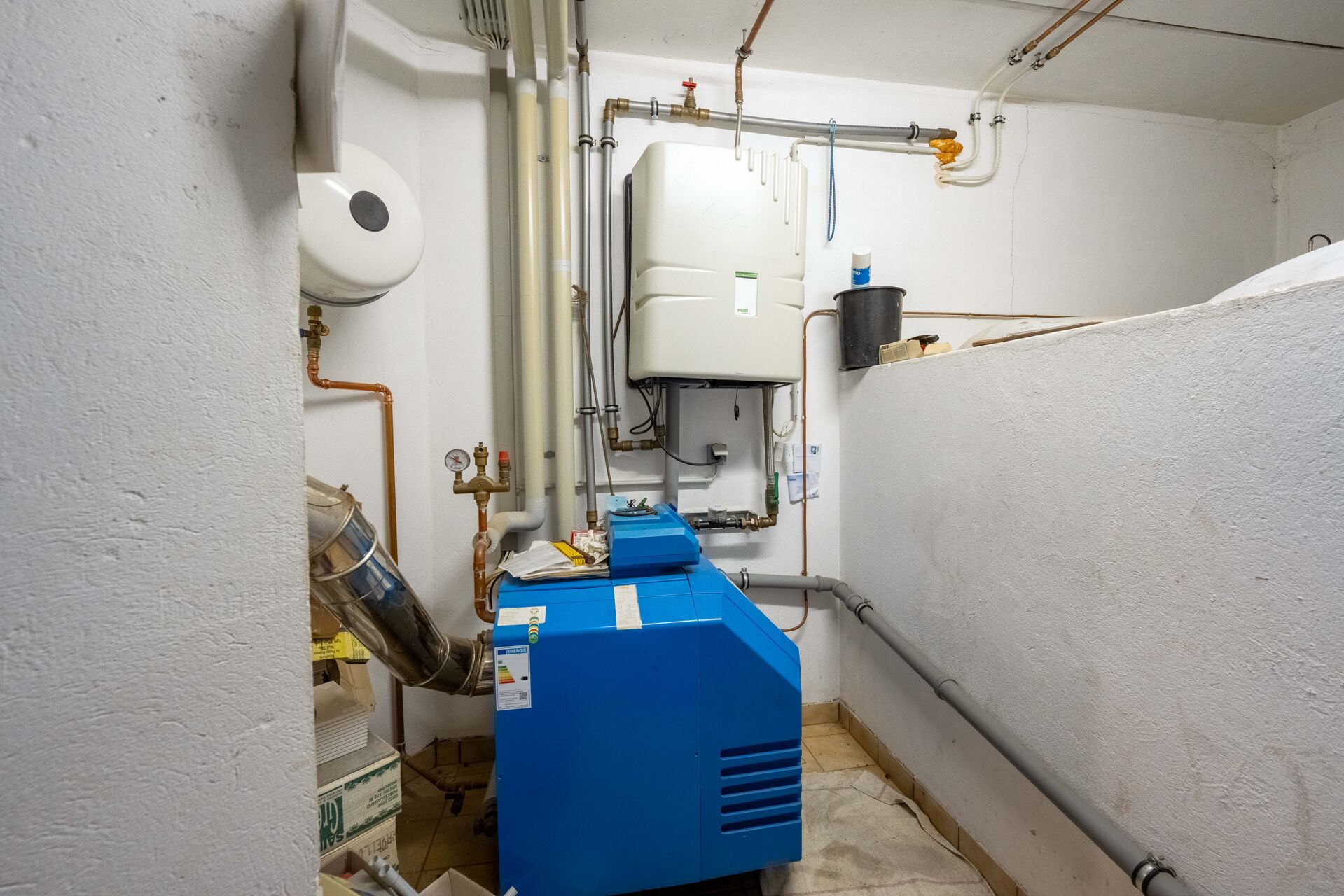 Centrale verwarming op olie met warmwatervoorziening (zonnecollectoren op het dak voor bijverwarming)
