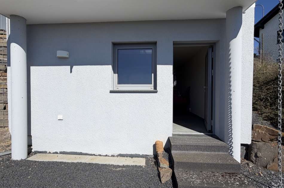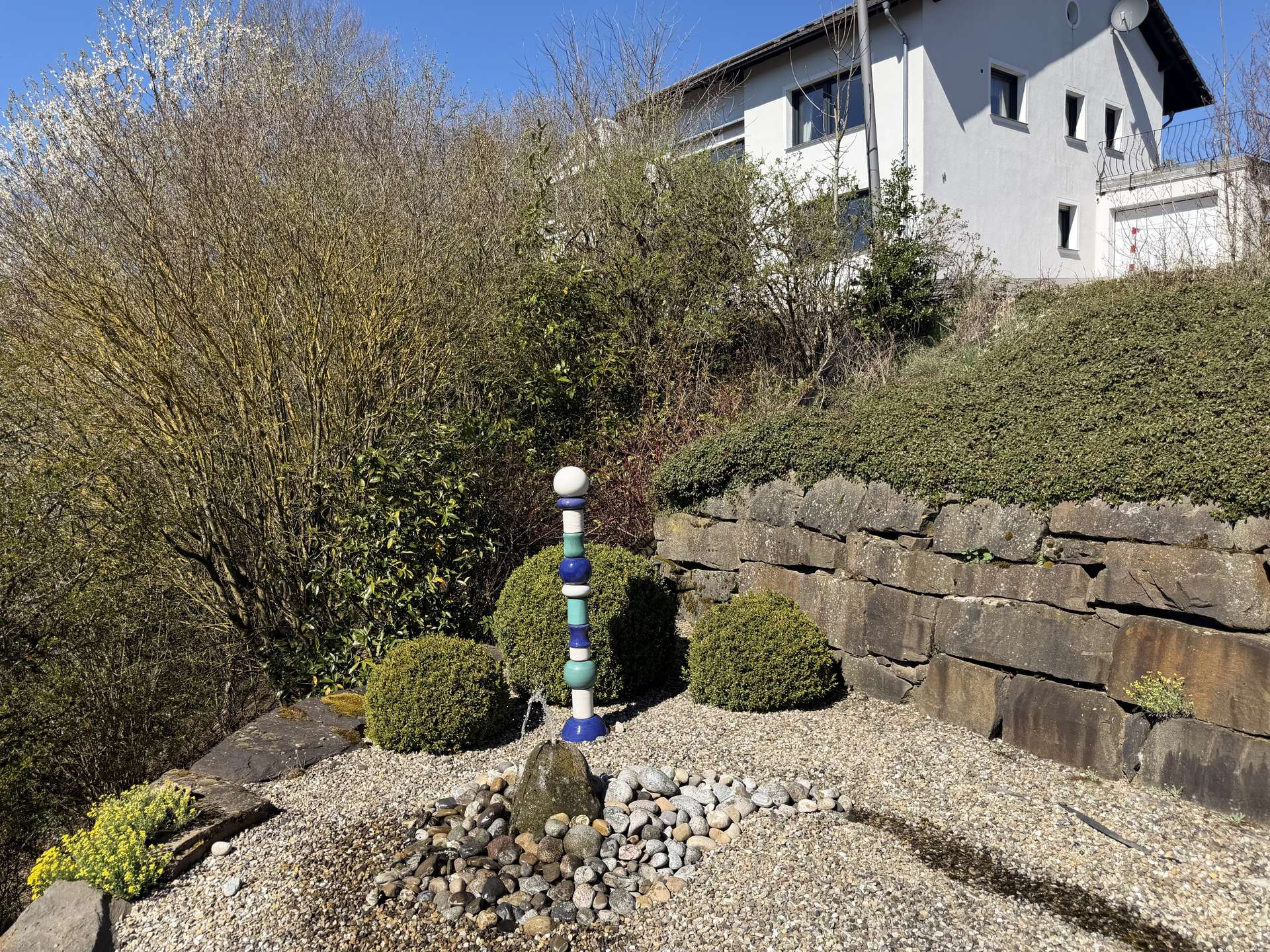 Das Grundstück ist 515 m² groß. Es ist absolut pflegeleicht. Lästige Gartenarbeiten können so vermieden werden. Der Hang unter dem Haus wurde hochwertig u.a. mit Gabionen befestigt. Die Zufahrt zur Garage ist mit Pflastersteinen gestaltet.
