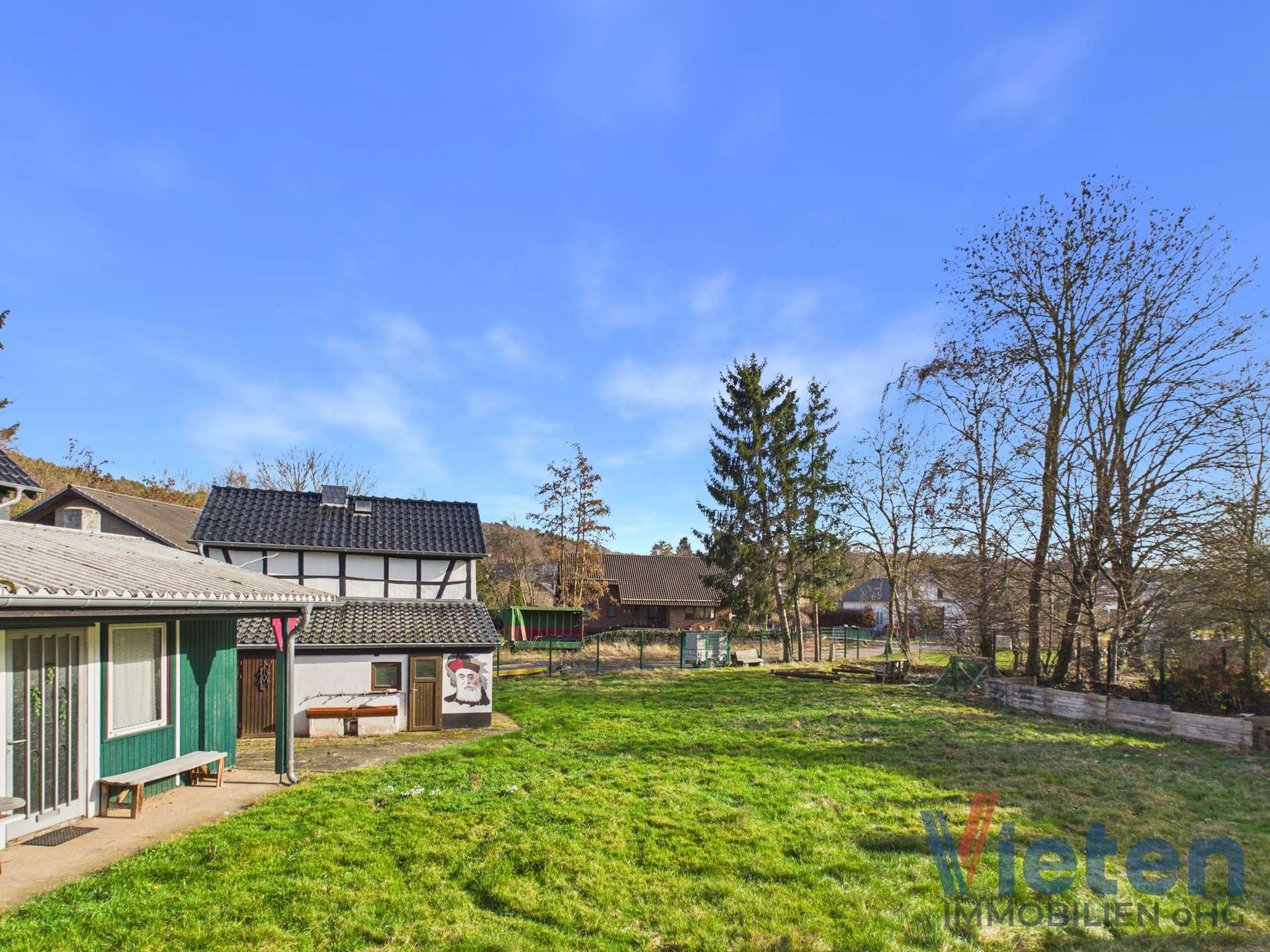 Das ca. 1.155 m² große Grundstück bietet großzügige Gestaltungsmöglichkeiten und viel Platz für ein individuelles Wohnkonzept mit weitläufigem Garten – ideal zum Entspannen, Gärtnern oder für spielende Kinder. Eine seltene Gelegenheit für alle, die sich ihren Wohntraum in gewachsener Lage sichern möchten. Auf dem Grundstück befinden sich derzeit ein nicht erhaltungswürdiges Fachwerkhaus sowie ein Gartenhaus.