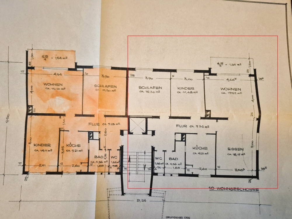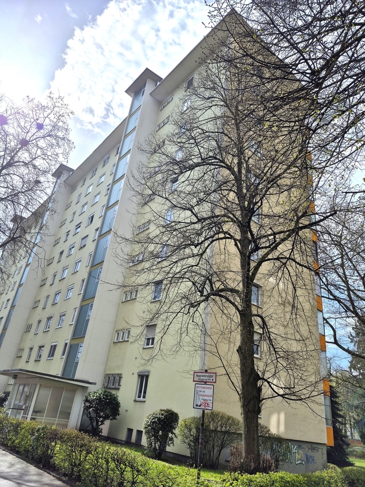 Die Wohnung befindet sich im 2. Obergeschoss einer Wohnanlage mit 60 Wohneinheiten aus dem Baujahr 1954.