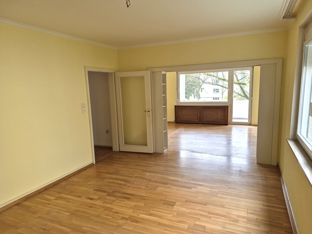 Aktuell befindet sich die Eigentumswohnung im renovierungsbedürftigen Zustand. Bad und Gäste-WC wurden bereits überarbeitet und 2023 wurden im gesamten Objekt die Eingangstüren erneuert.