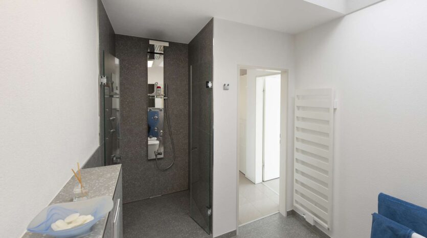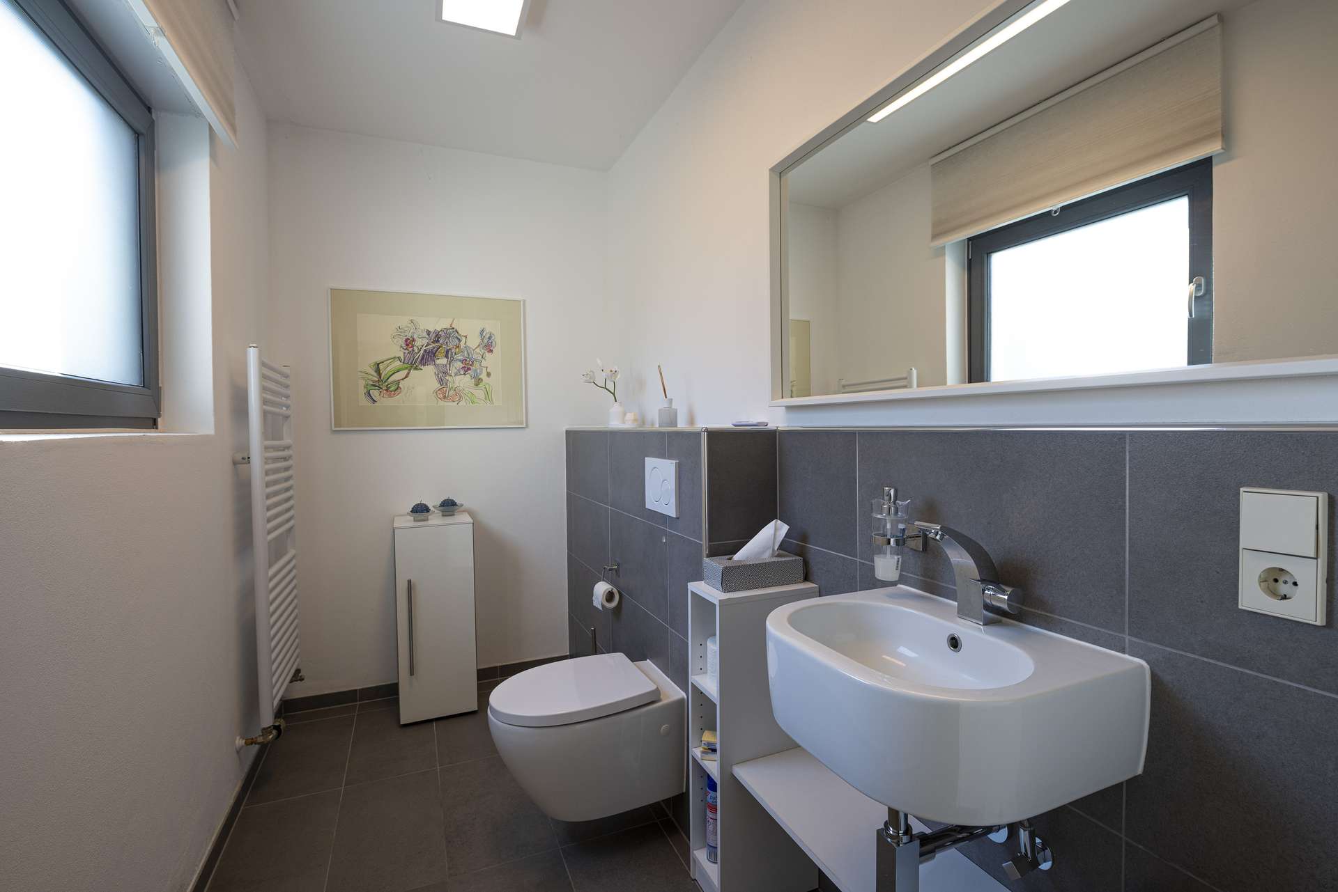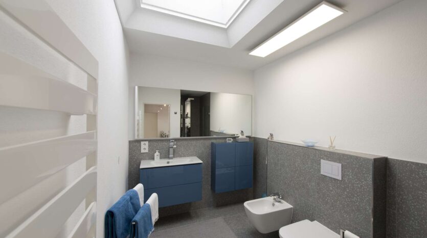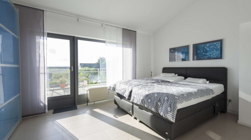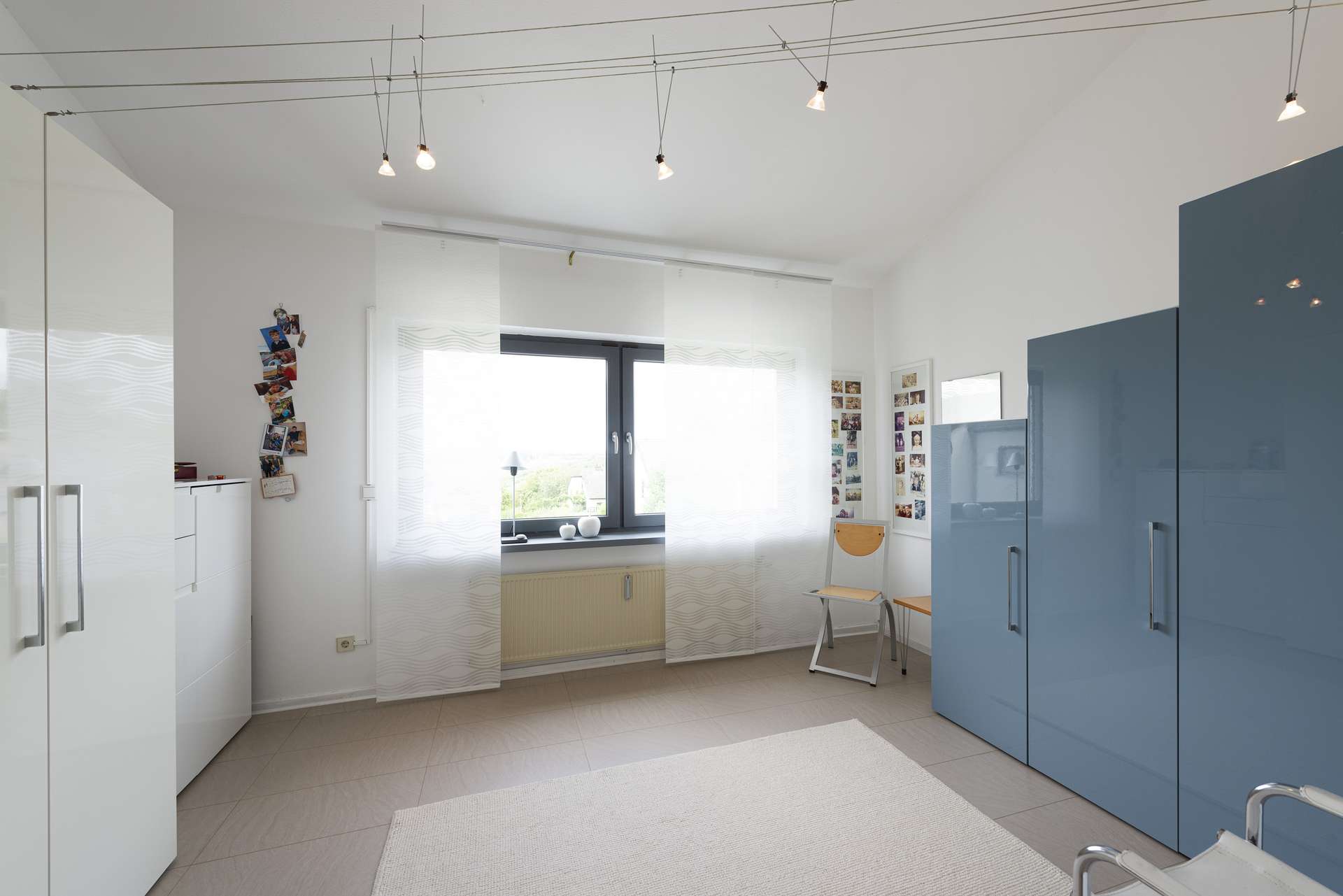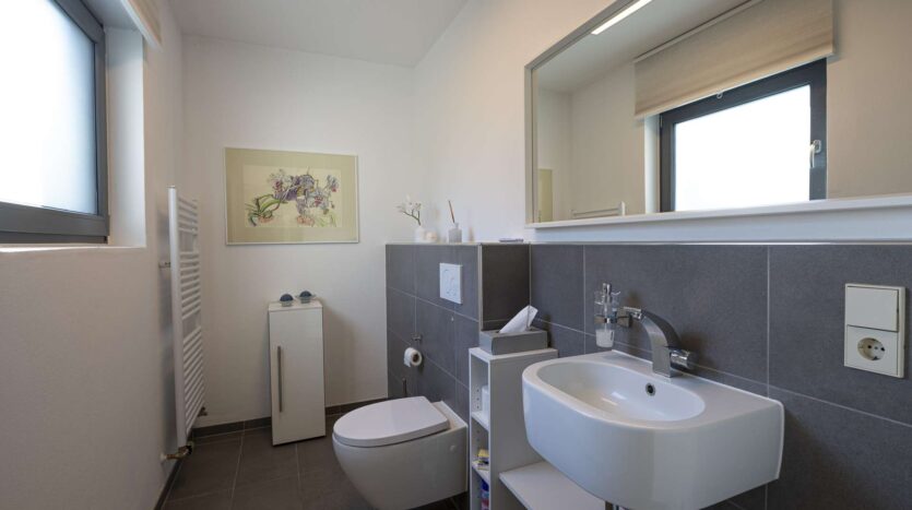 Im Obergeschoss erwarten Sie bis zu drei gut geschnittene Schlafzimmer, eines davon mit Balkon und traumhaftem Fernblick ins Grüne – ein Ort zum Durchatmen! Das stilvolle Familienbad wurde 2021 vollständig saniert und begeistert mit hochwertiger Ausstattung, bodentiefer XXL-Dusche und modernem Design.