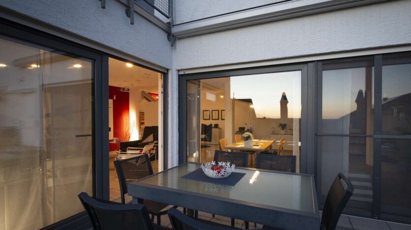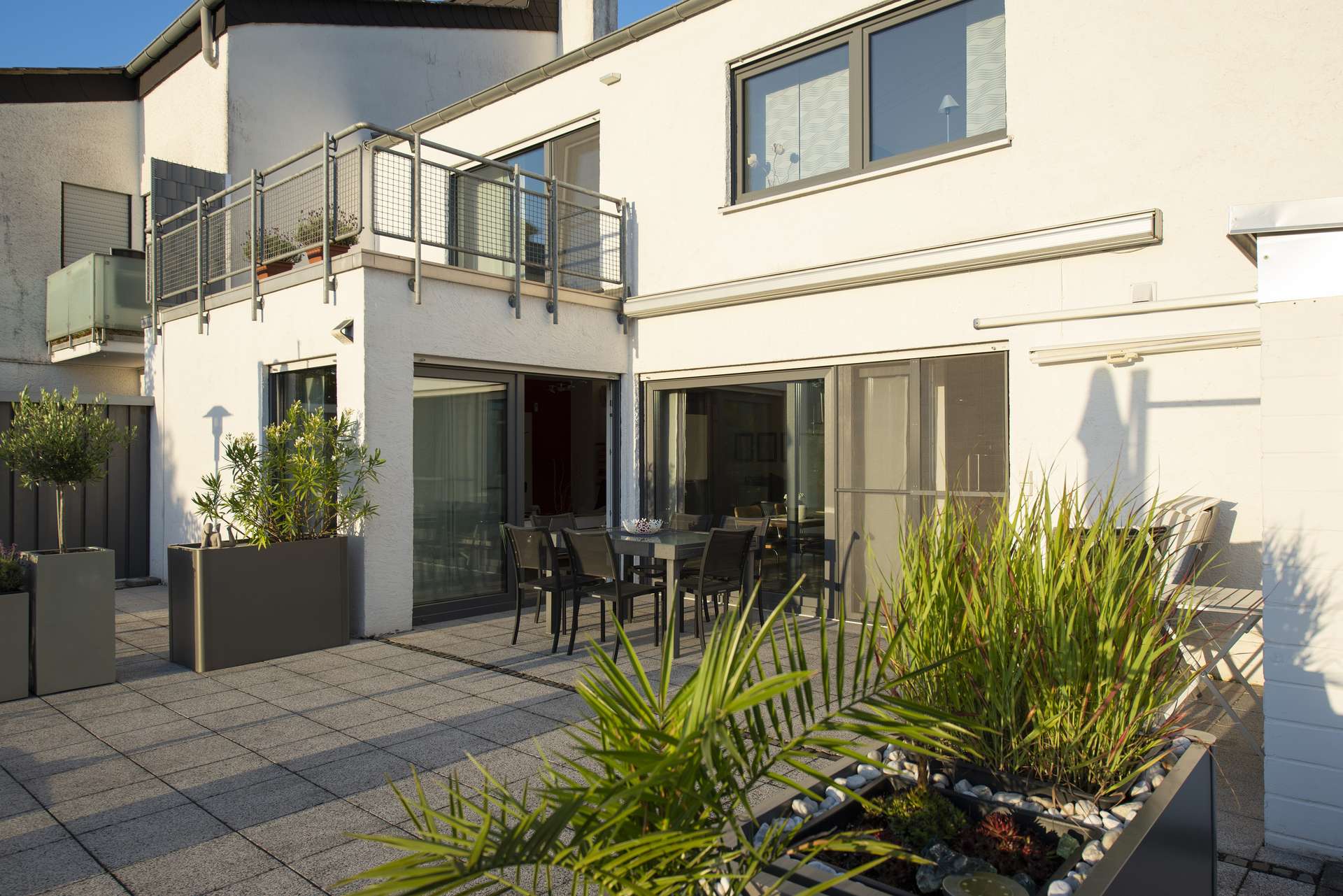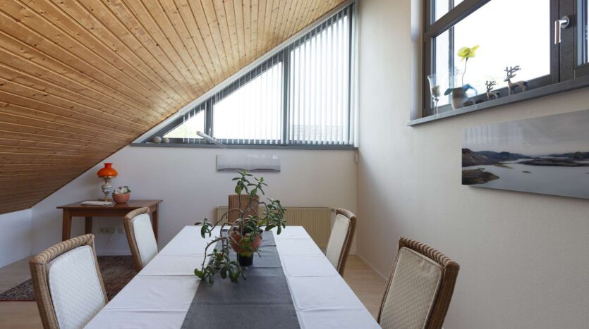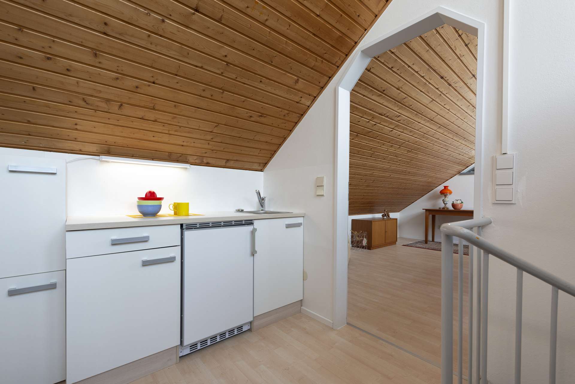 Die separat zugängliche, aber auch intern erreichbare mögliche Einliegerwohnung bietet rund 88 m² Wohnfläche auf zwei Etagen und überzeugt mit flexiblen Nutzungsmöglichkeiten: Ob als Büro, für erwachsene Kinder, zur Vermietung oder für die Großeltern – hier sind Ihnen keine Grenzen gesetzt. Im Erdgeschoss befinden sich ein Wohnzimmer, ein Raum der ideal als Küche genutzt werden kann sowie ein Duschbad. Im Obergeschoss ergänzt eine kleine Singleküche mit offenem Essbereich sowie zwei weitere Zimmer das Raumangebot. Die eigene Dachterrasse der Einliegerwohnung bietet zusätzliches Wohlfühlpotenzial.
