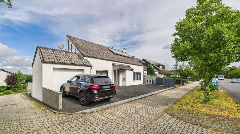 Praktisch und großzügig präsentiert sich auch der Außenbereich: Eine Garage sowie bis zu vier Außenstellplätze bieten viel Platz für Fahrzeuge. Der vordere Teil des Hauses und die Garage sind unterkellert. Hier befinden sich mehrere Lager- und Abstellräume, die Waschküche sowie die moderne Gaszentralheizung aus dem Jahr 2022.