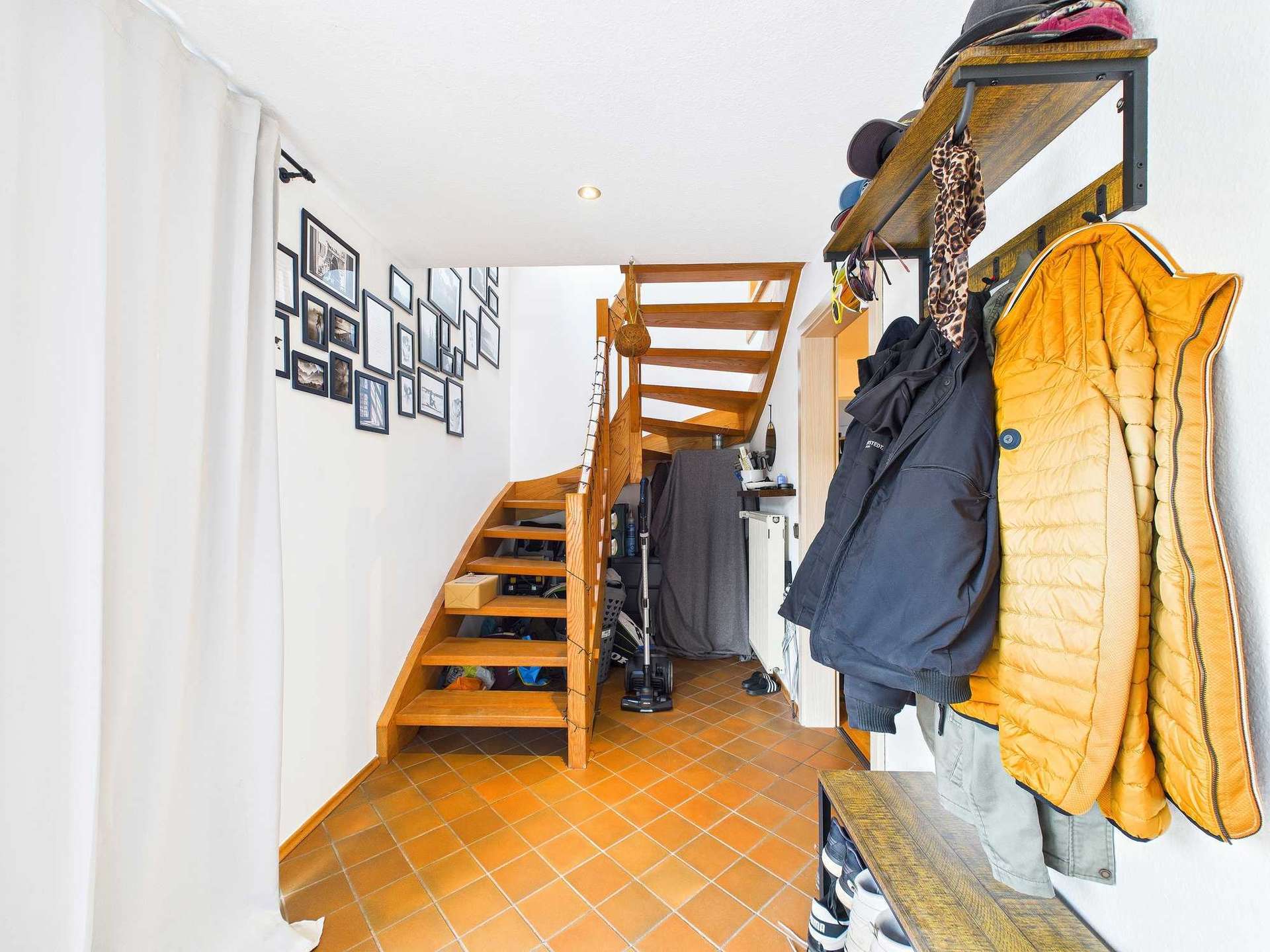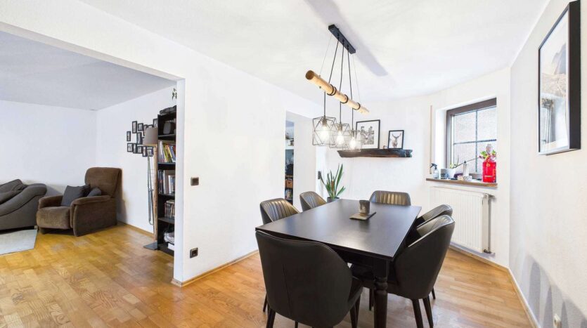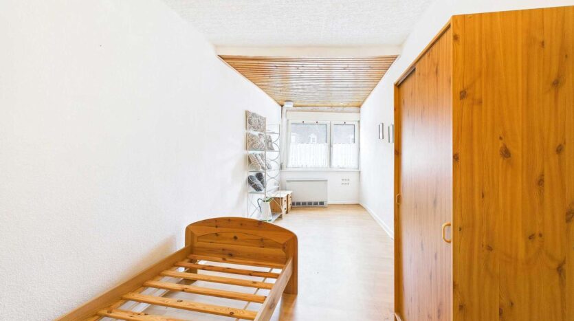 Im Obergeschoss stehen derzeit vier Schlafzimmer, zwei Bäder und zwei Abstellräume zur Verfügung. Eines der Schlafzimmer bietet Zugang zu einer Terrasse. Mit überschaubarem Aufwand lässt sich auch hier eine eigene Wohneinheit realisieren – perfekt für erwachsene Kinder, Eltern oder Gäste.
