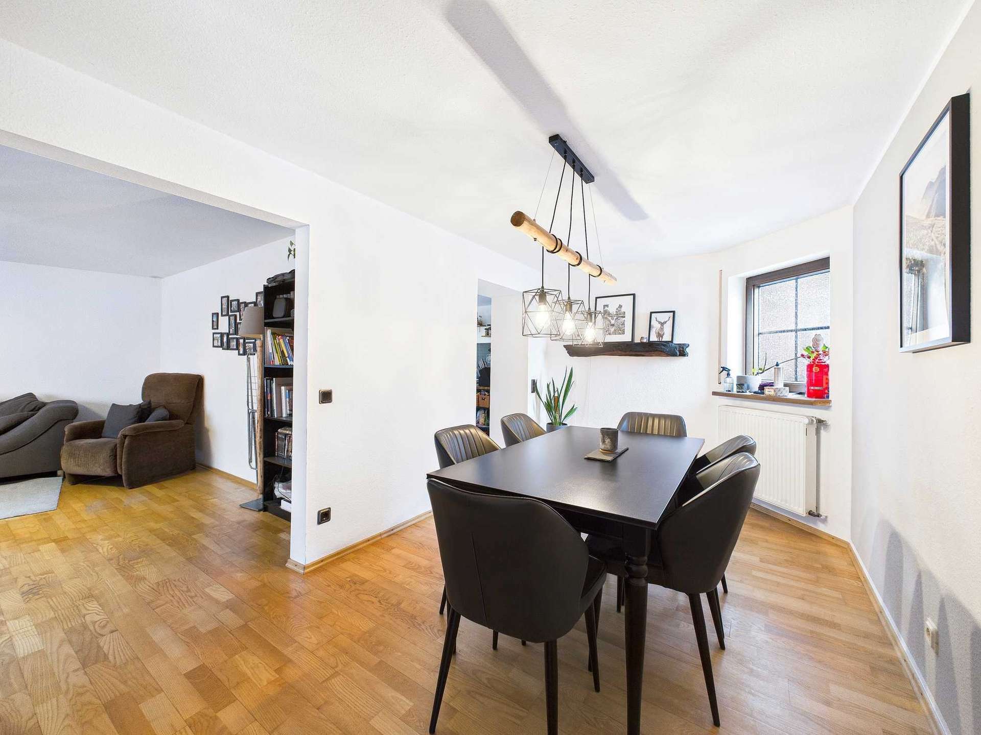 Die in Mitte der 90er Jahren ausgebaute Einheit besticht durch eine durchdachte Raumaufteilung: Über die Diele gelangt man in das Esszimmer, das große Wohnzimmer und die Küche. Ein Schlafzimmer sowie ein modernes Duschbad komplettieren diese Etage.