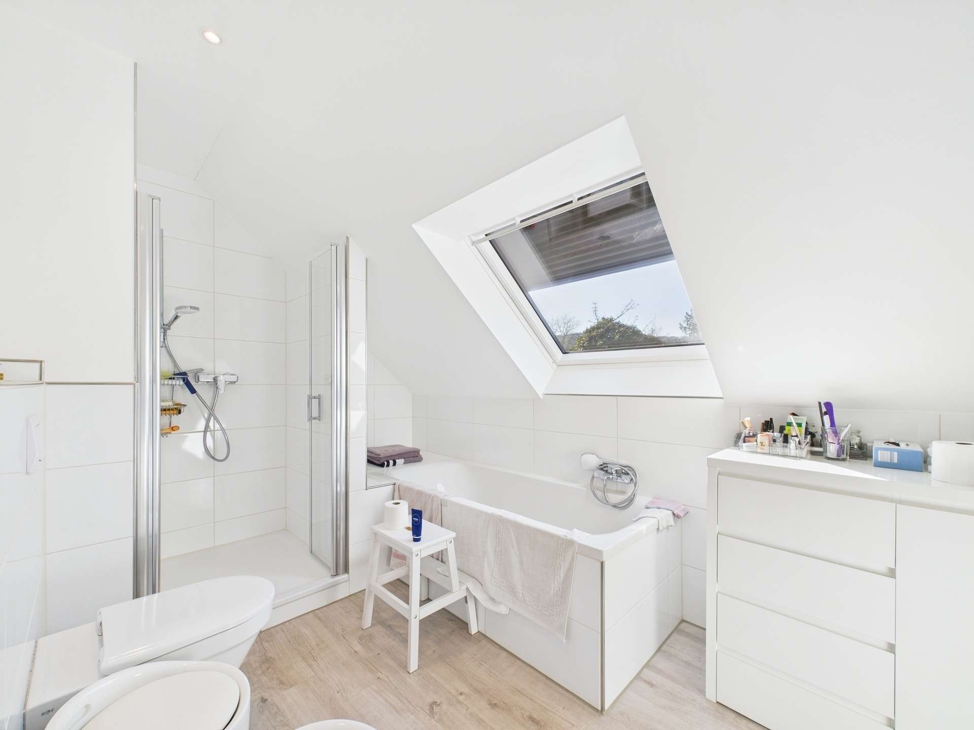 Ein weiteres Highlight ist die separate Wohneinheit im Dachgeschoss, die in den letzten Jahren modern ausgebaut wurde. Diese verfügt über einen lichtdurchfluteten offenen Wohn-Essbereich mit stilvoller Gaube, ein Schlafzimmer sowie ein Badezimmer mit Dusche und Badewanne – ideal für langfristige Vermietung oder zusätzliche Gäste.