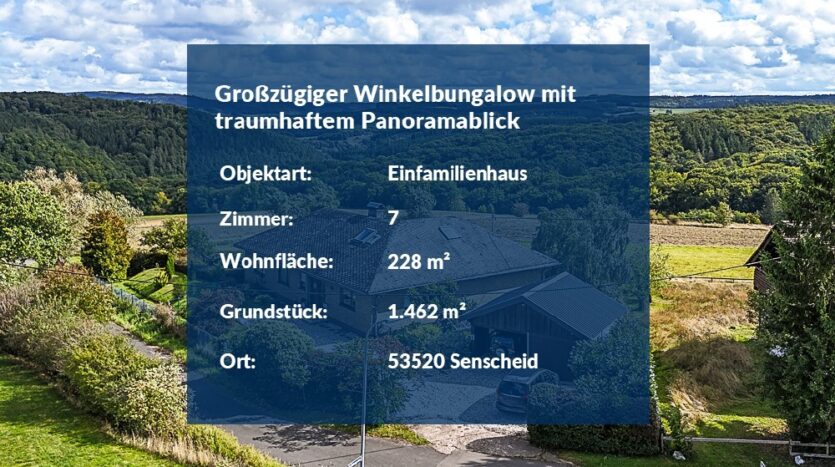 br> br>Traumhafter Panoramablick: Großzügiger Winkelbungalow am Ortsrand von Senscheid in der Eifel
